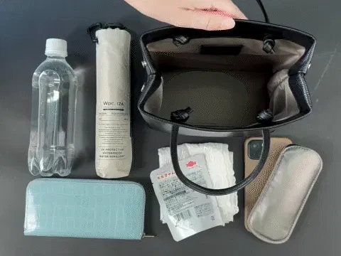 財布やハンカチ、スマホや折り畳み傘など、お出かけに必要最低限のものはバッチリ入ります!