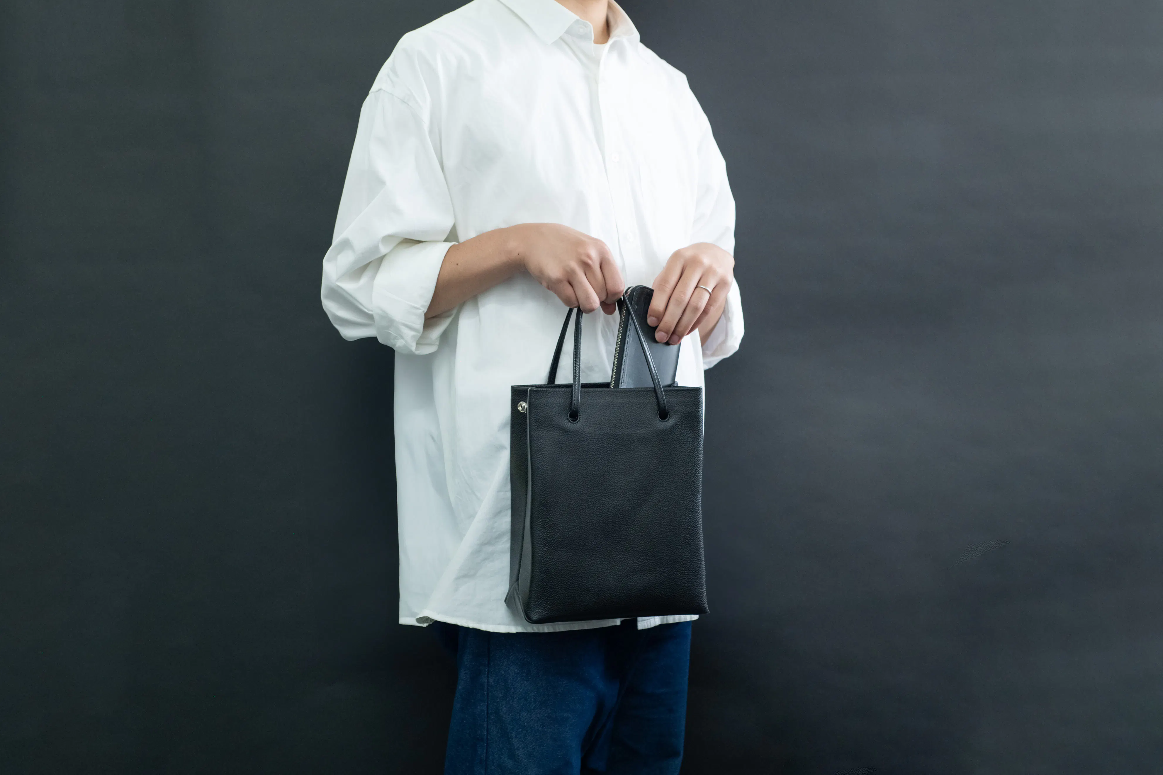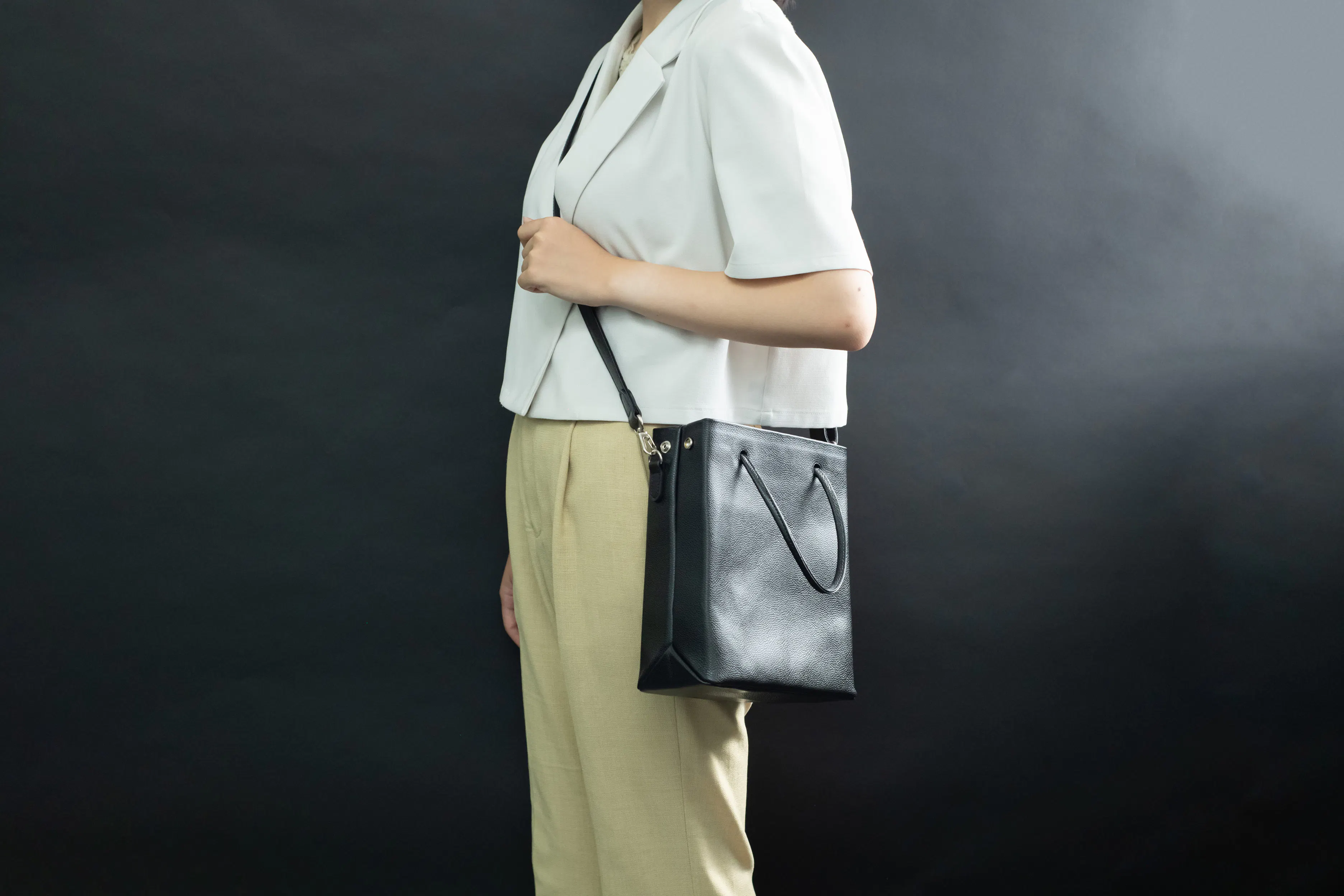 「たたずまい」にもこだわりました。地面にバッグを置いた時に、自立してかっこいいたたずまいになるように設計しました。