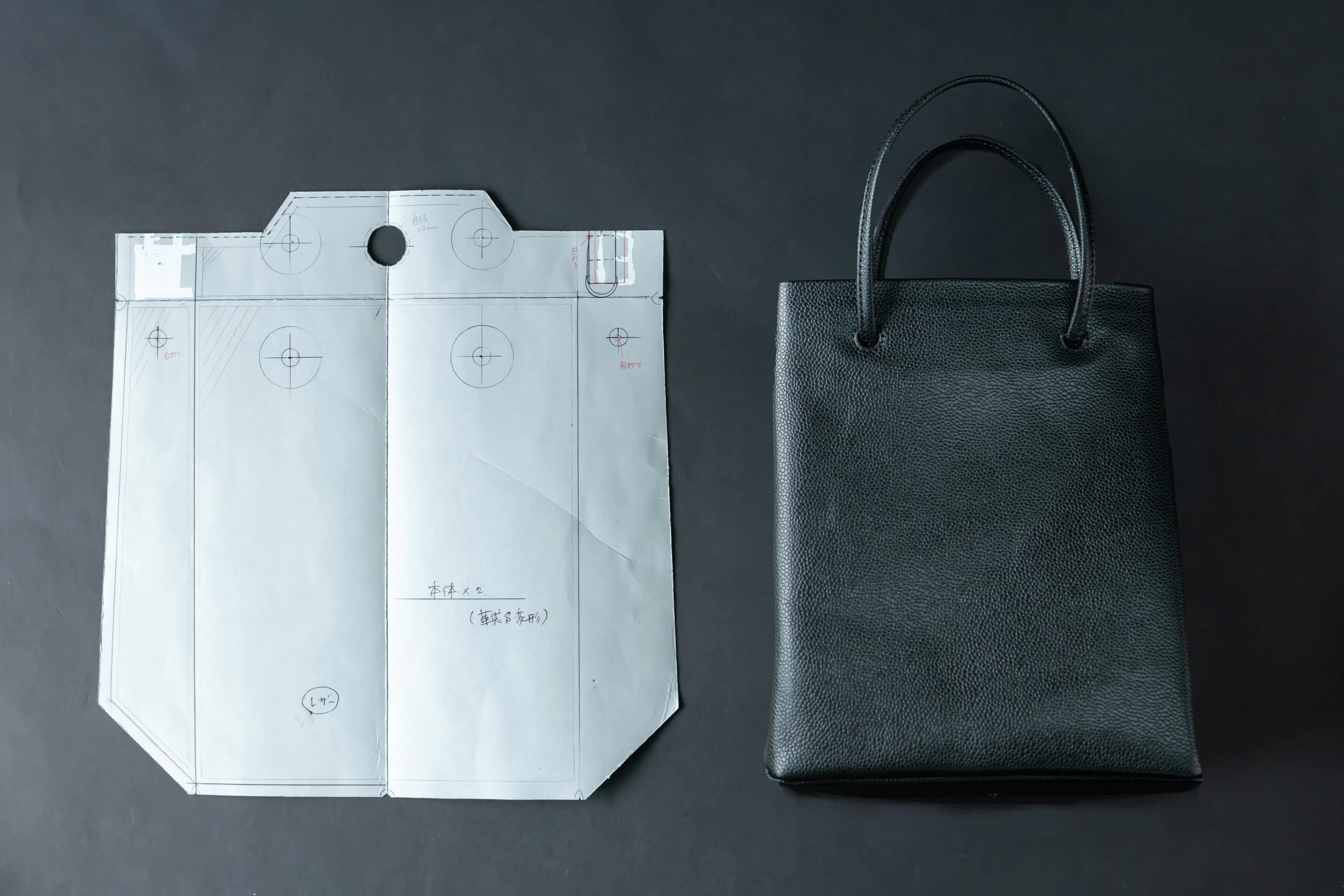 紙袋の問題点は「耐久性」と「恥ずかしさ」があるということが浮かび上がってきたので、その両方を解決するべく職人みんなで会議に会議を重ねてようやく完成したのが「大人革袋 小」です。