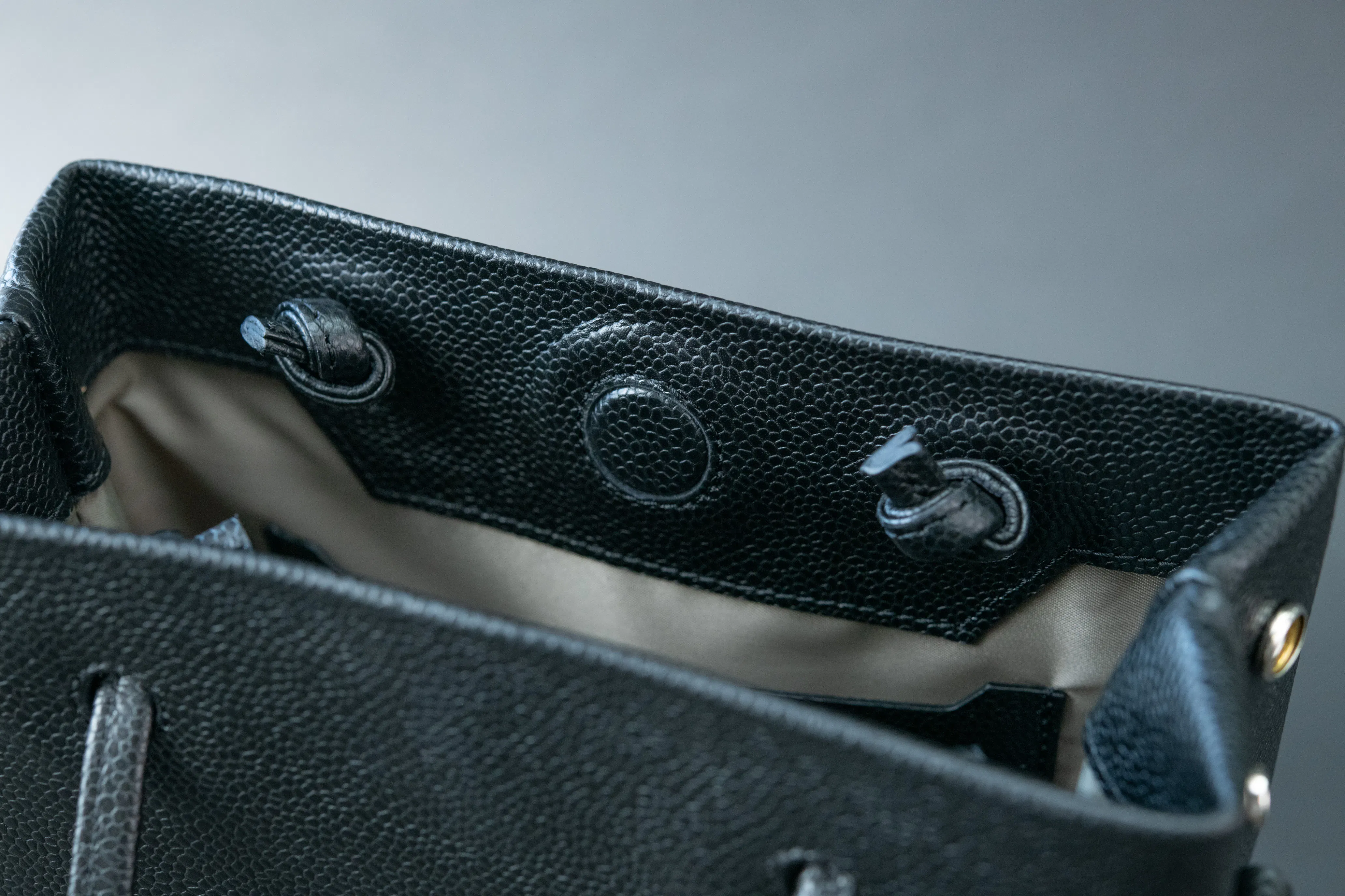 キャビアスキンは、ハイブランドの製品に使用される高品質のカーフスキン(牛革)です。表面に細かい凹凸があり、キャビアのような質感を持つことからこの名前が付けられました。キャビアスキンの正式名称は「グレインド カーフスキン」(grained calfskin)ですが、「キャビアスキン」という名前でも広く知られています。