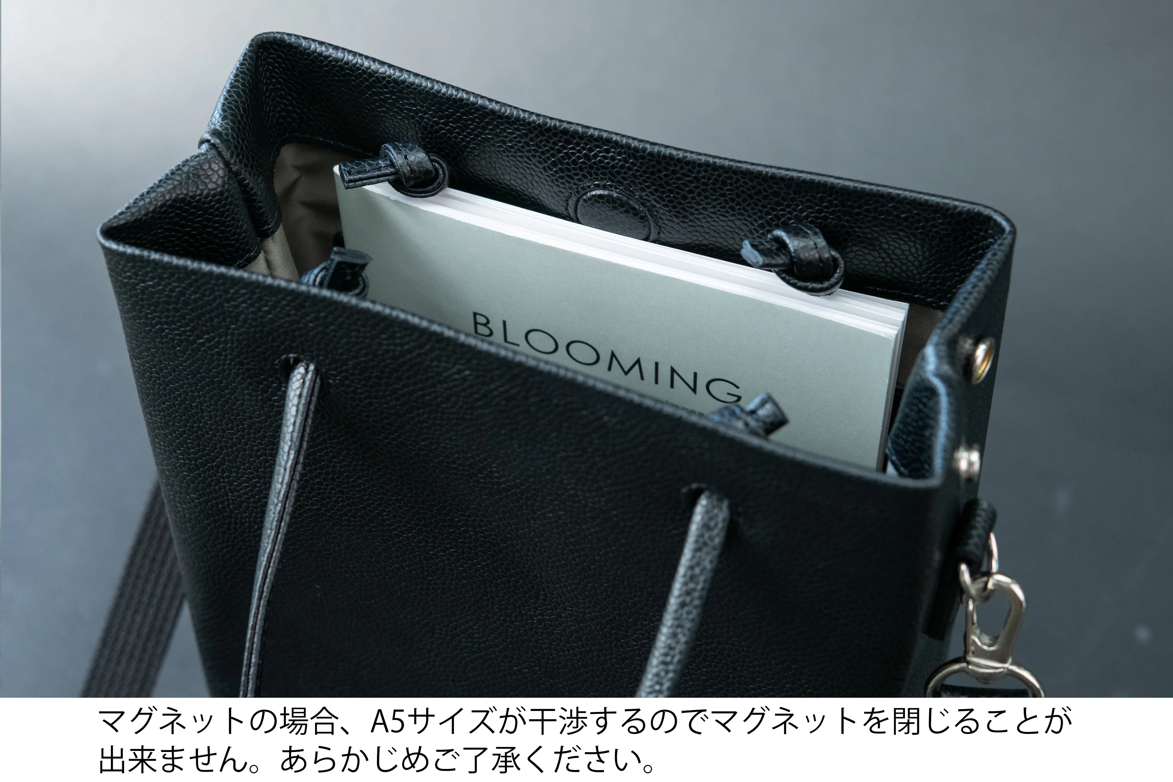大きな荷物を持たずにお出かけすることを考えて、A5サイズがすっぽり入るサイズにしました!!