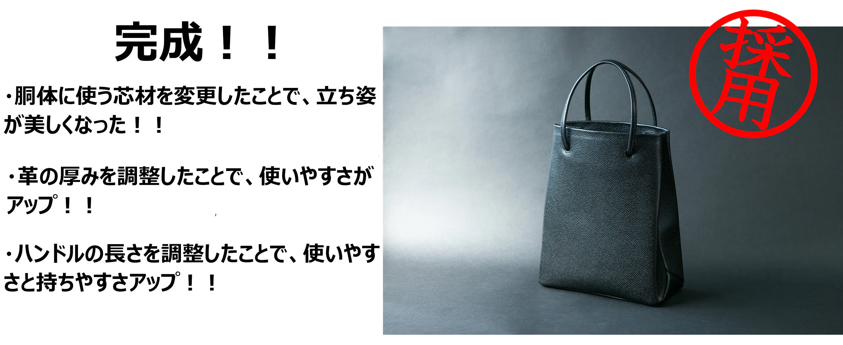 5万点以上のアイテム販売して、お客さまからいただいた様々なご意見を基に、職人である私たちが一丸となって完成させたのが『大人革袋 小』です。