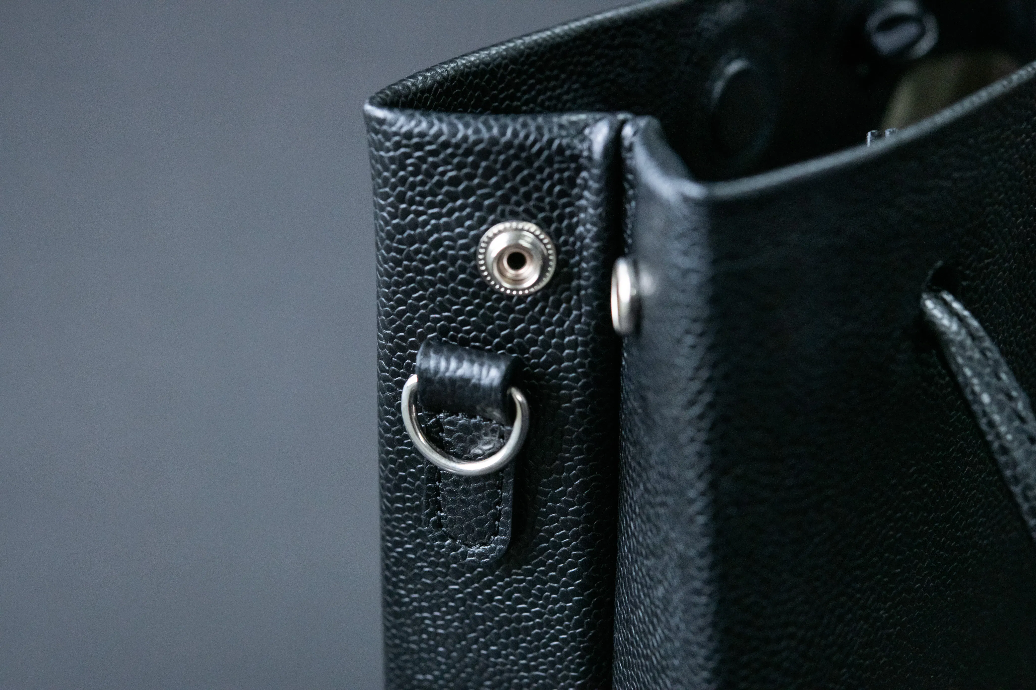 ※ショルダーを取り付けるDカン(本体に縫い付けている)は、オプションでショルダーをご購入された場合のみ付属いたします。