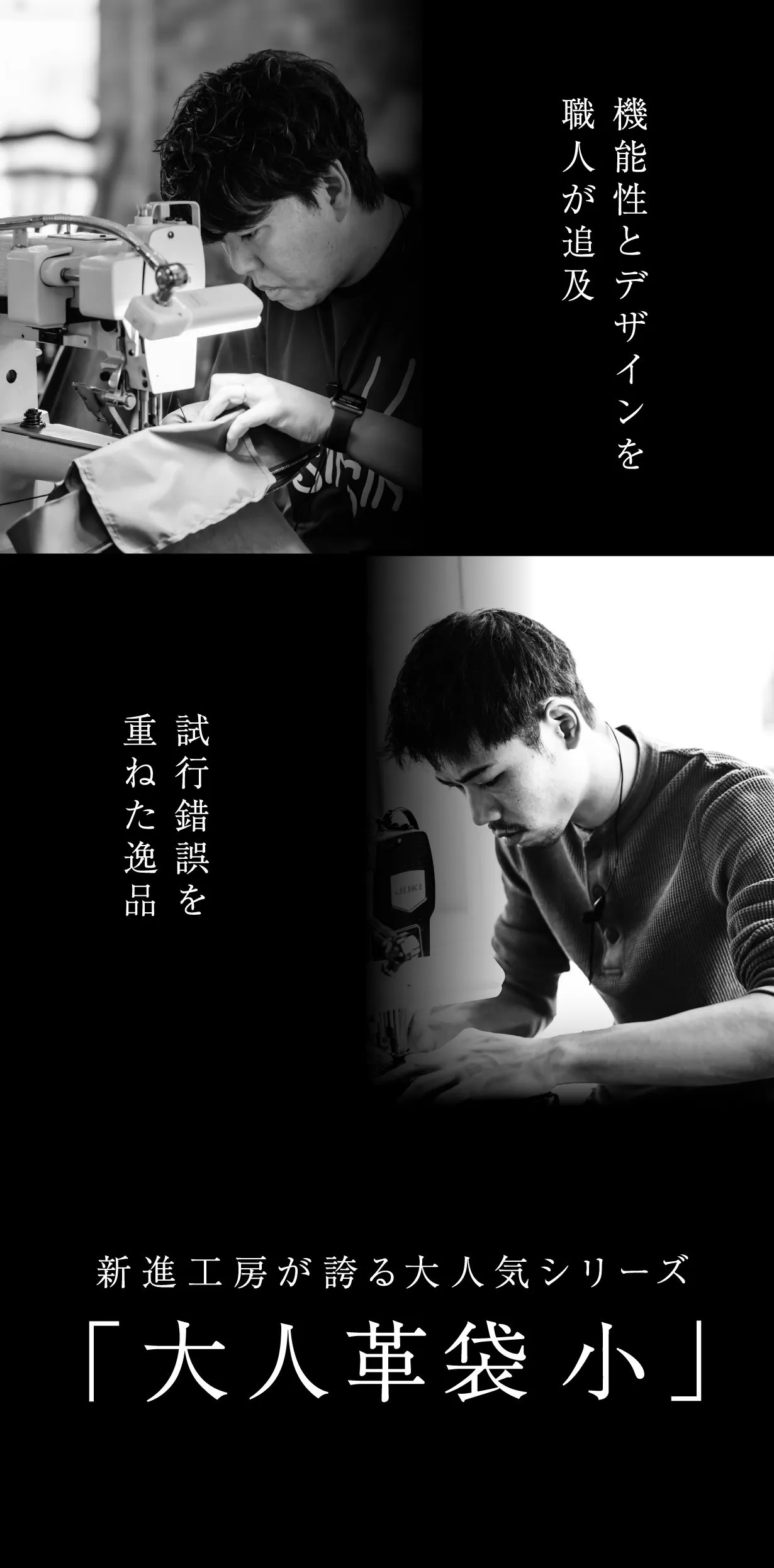 「大人革袋 小」にご興味を持っていただき、ありがとうございます。僕たち新進工房は若手革職人のグループです。斜陽産業と言われている日本の革職人業界を少しでも盛り上げたいと考えています。
