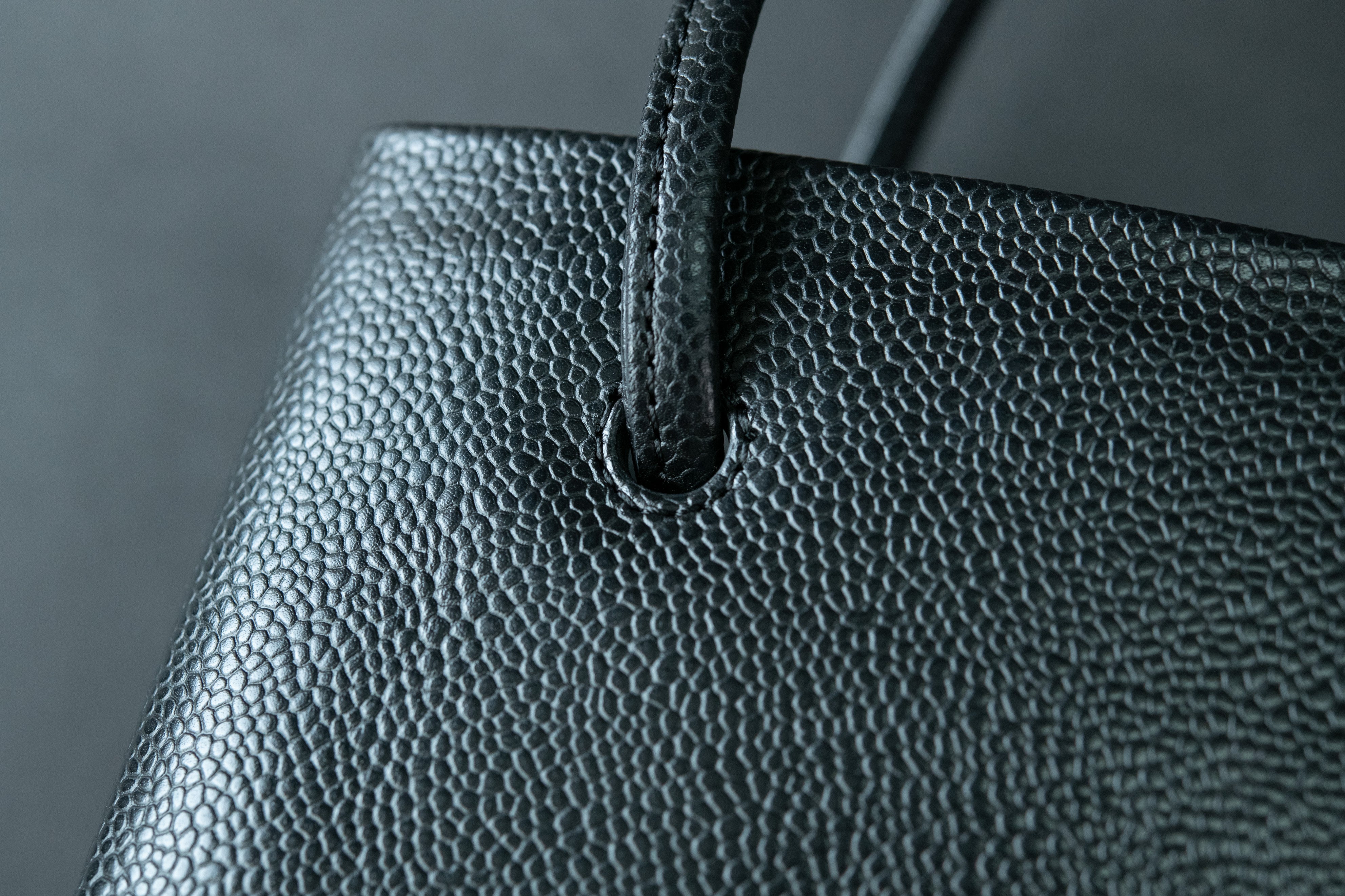 キャビアスキンは、ハイブランドの製品に使用される高品質のカーフスキン(牛革)です。表面に細かい凹凸があり、キャビアのような質感を持つことからこの名前が付けられました。キャビアスキンの正式名称は「グレインド カーフスキン」(grained calfskin)ですが、「キャビアスキン」という名前でも広く知られています。