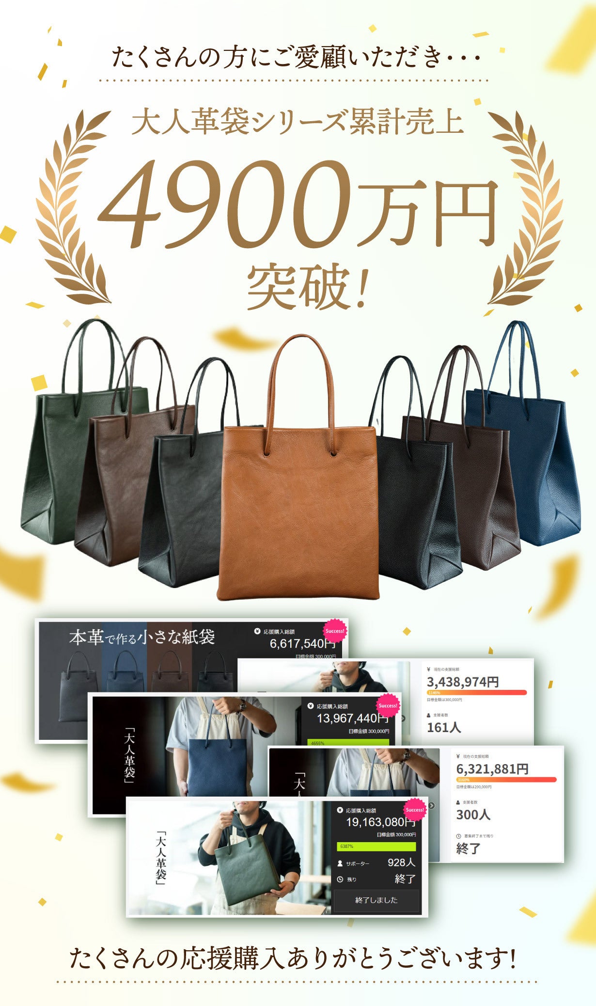 2024/11/30 17:00皆さまどうもこんにちは!新進工房の仙入寛章と申します。まずは「大人革袋小キャビアレザー」をご支援してくださった皆さま、本当にありがとうございます!この文章を書いている時点で、、、サポーター 128人支援総額 4,276,066円となっておりとても嬉しいです!キャビアレザーと言うこだわりのレザーで製作いたしました今回の作品。沢山の方のご支援をいただけて本当に嬉しいです!この素材はとてもレアで高級なのでほぼ素材で被ることがないバッグとなっています。新進工房のものづくりのこだわりの部分で共感していただけたことが本当に嬉しいです!そして販売開始から温かいコメントをいただきとても嬉しかったです。その一部をご紹介いたします。「毎度動画楽しんでます。いつもありがとうございます。」「大阪府内に素敵な工房があるとは知りませんでした。色々厳しい状況かと思いますが真摯な姿勢でのモノ作りの継続を期待し、応援いたします。」「時間ある時にYouTubeを見させてもらっております。事業を立ち上げた事で苦労があると思いますが応援しております。お兄ちゃんのストレートな物言い好きです。に対してのそっけない返答も微笑ましいです。主人も職人ですので若手の減少についても多少は通じるものがあります。これからのご活躍を楽しみにしております。」さて皆さま!ご支援いただいた皆さまにご期待以上のものづくりをお届けするのがプロです!一生懸命気持ちを込めてお作りいたします!到着までしばらくお時間をいただきますが、楽しみにお待ちくださいね!そんなわけで応援してくださったすべての皆さま、販売をサポートしてくださったCAMPFIREスタッフのみなさま本当にありがとうございます!みなさまのおかげでこの日を無事に迎えられる事が出来ました!感謝!!!!*********************▼「大人革袋 小」のプロジェクトページはこちら▼新進工房Youtube「大人革袋 小 」に関する商品情報や製作する職人の想いを発信しております。動画視聴はこちらお問い合わせ先:新進工房 カスタマーサービス電話:072-968-8181受付時間:平日 9:00 - 17:00 もっと見る