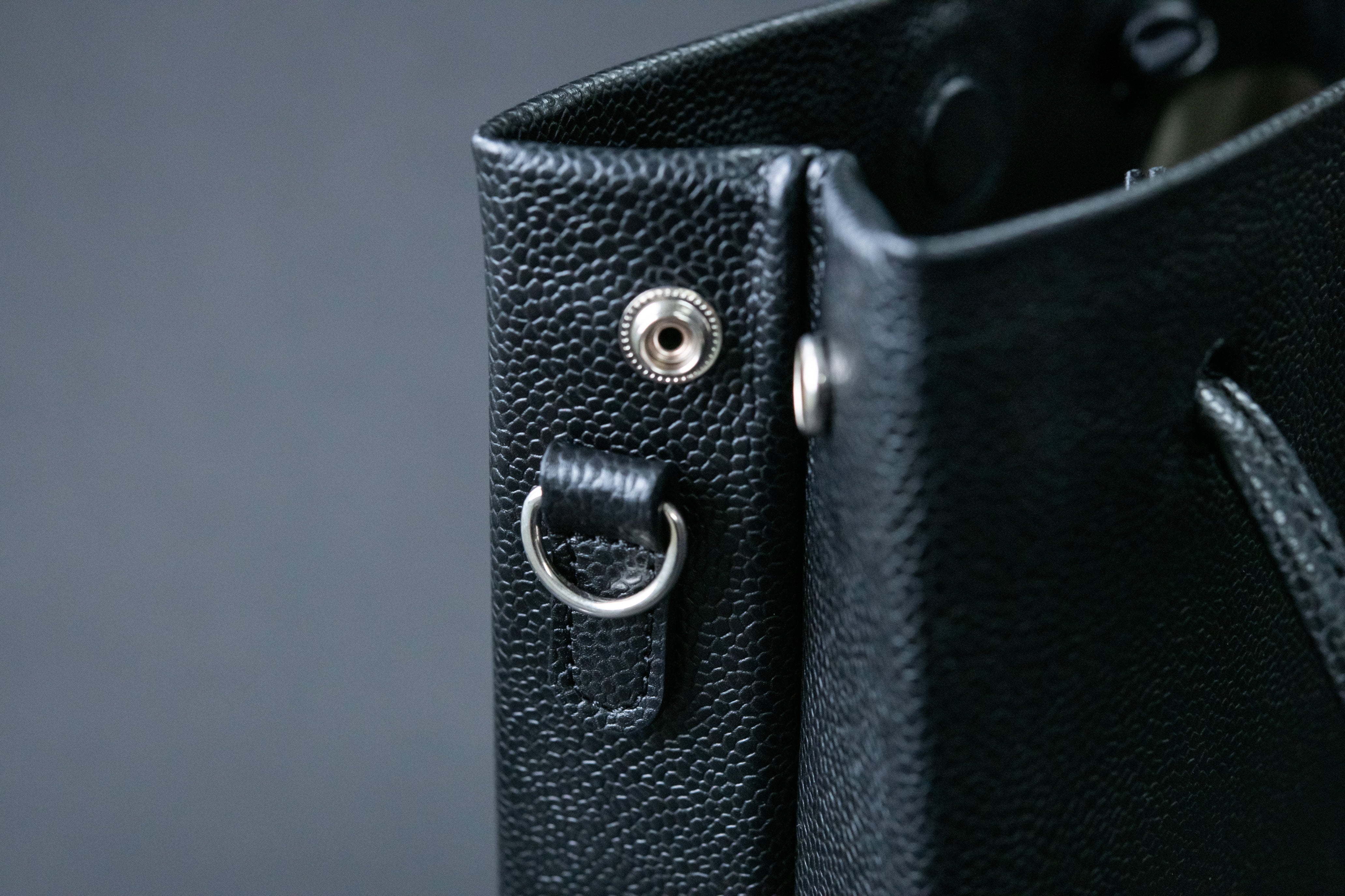 今回は革からこだわりました!!キャビアスキンは、有名ハイブランドのバッグにも使われている革です。牛革よりは繊維が細かいため、耐久性も他の牛革に比べて強くなっています。