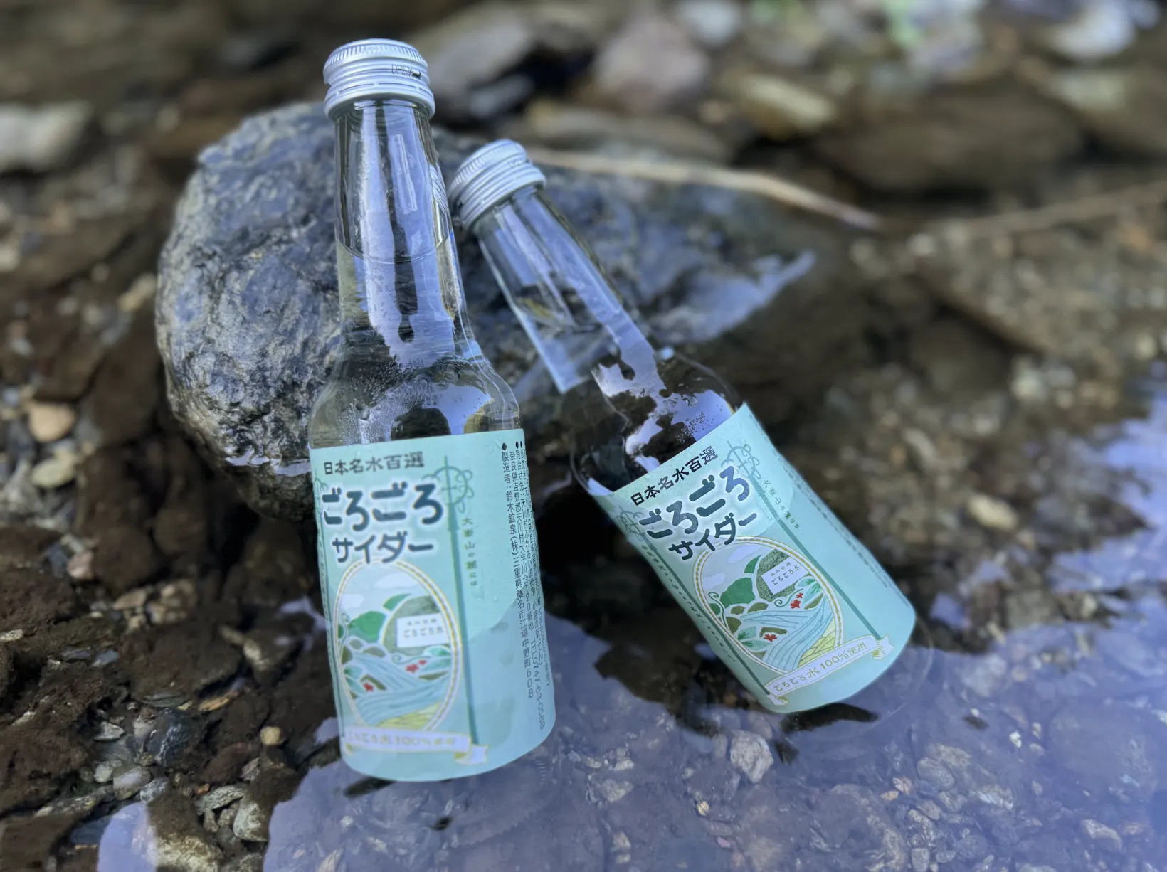 日本の名水100選に選ばれた「ごろごろ水」でつくったこのサイダーは、ゴクゴク飲めるすっきりとした甘さがウリ。