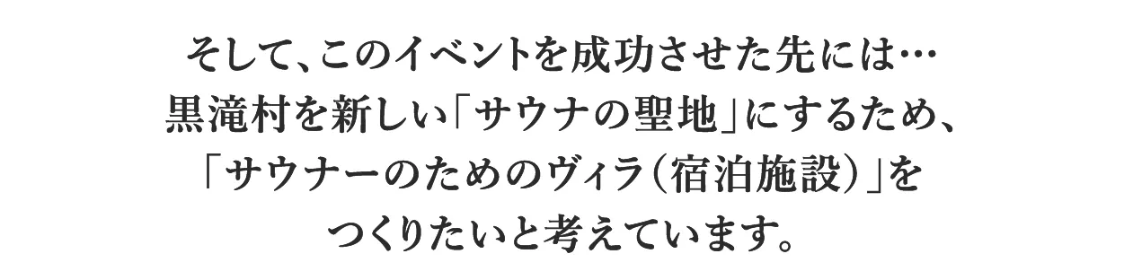 「せっかく黒滝村を訪れていただくからには、サウナだけでなく、周辺の観光スポットもフルで楽しんでいただきたい!」