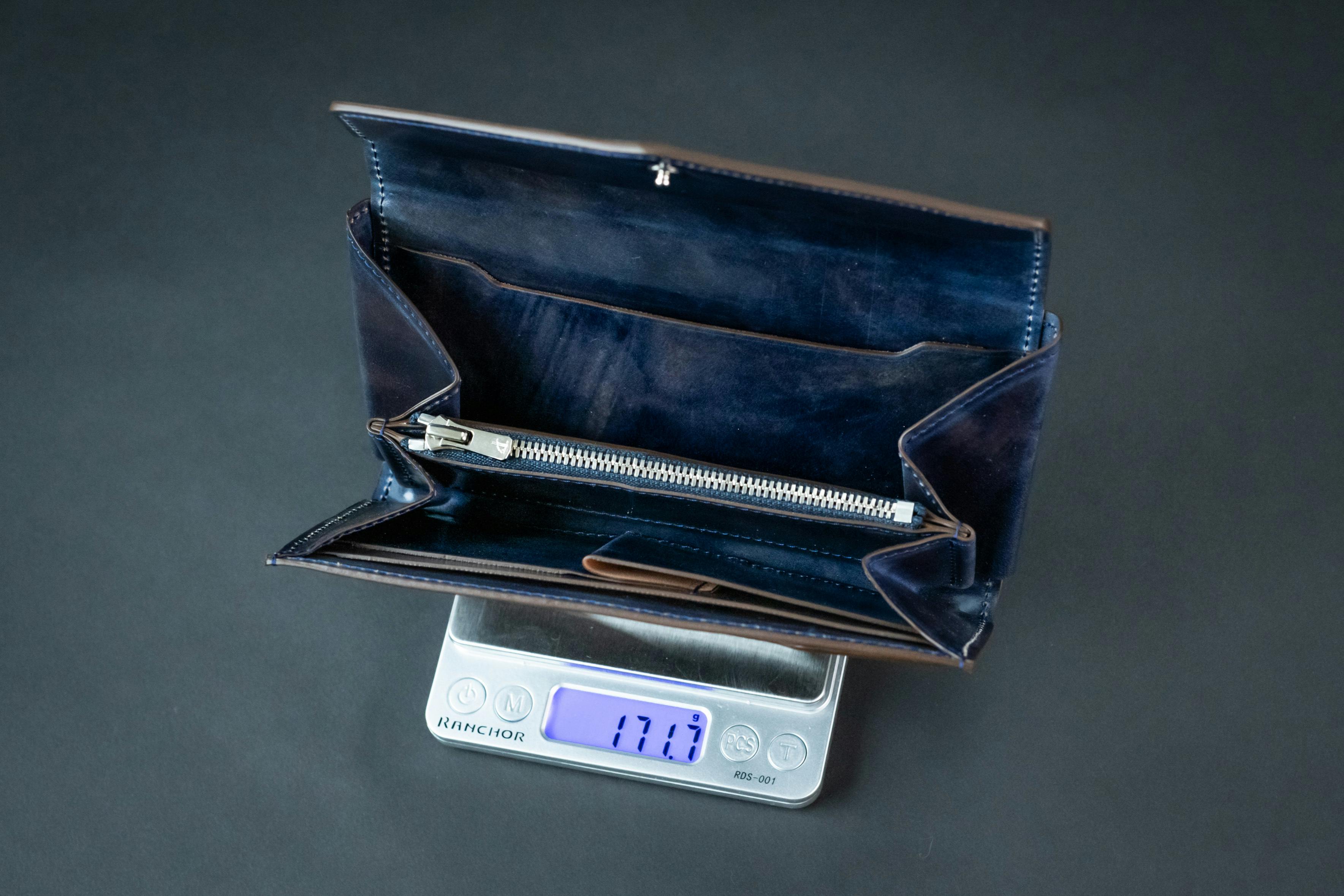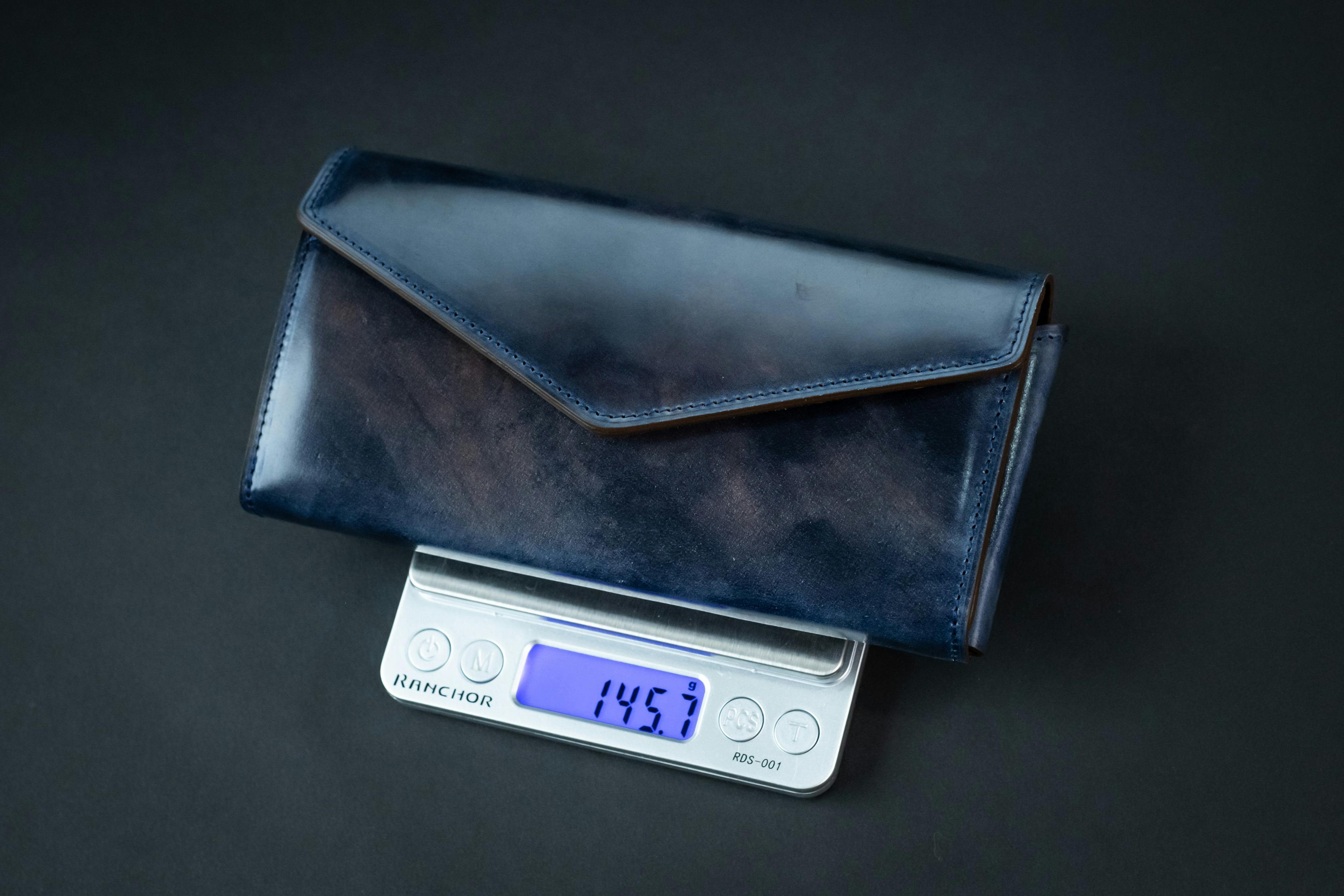 「極小長財布Ficelle-フィセル-」はオールレザーの長財布なのに、不必要なパーツを取り除くことにより、なんと「約145g」と、とても軽い財布にすることができました。