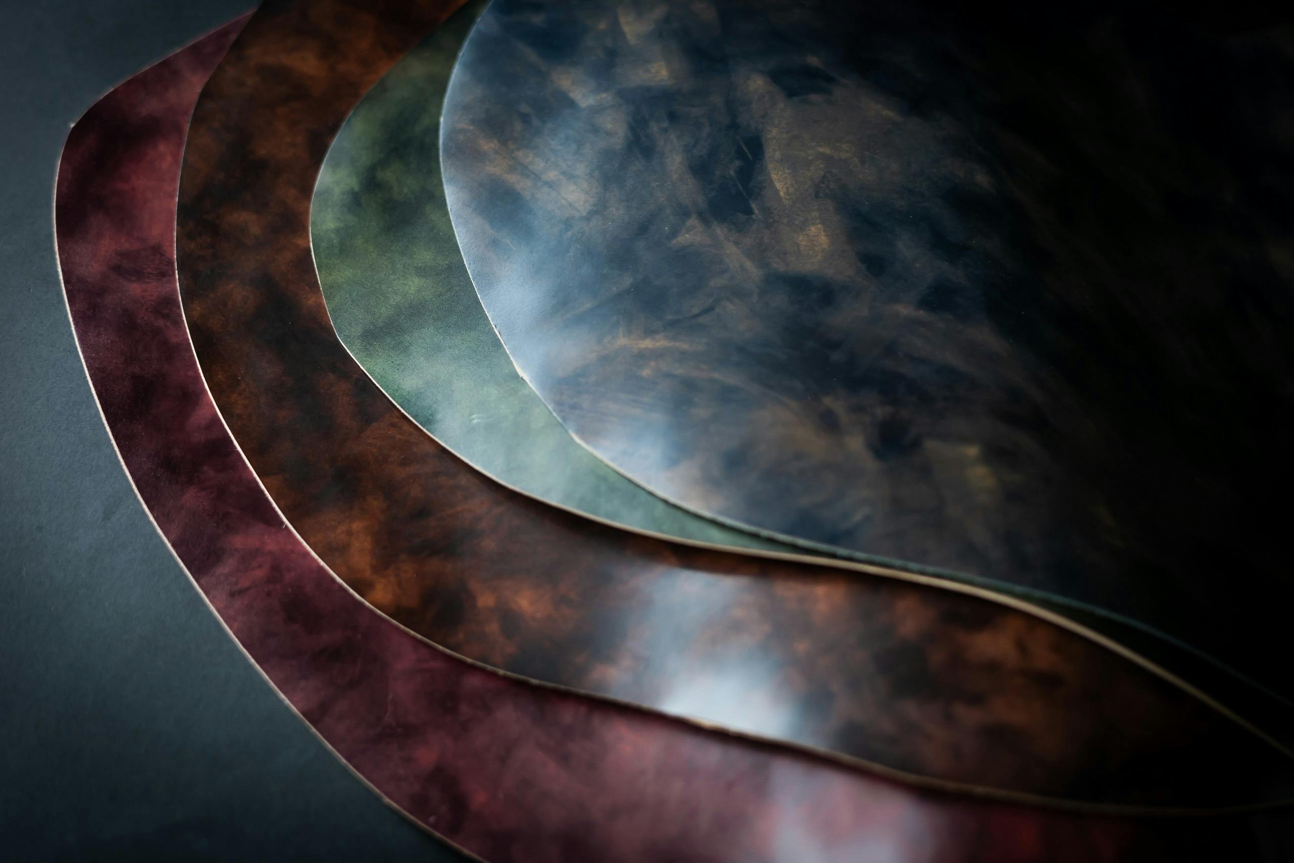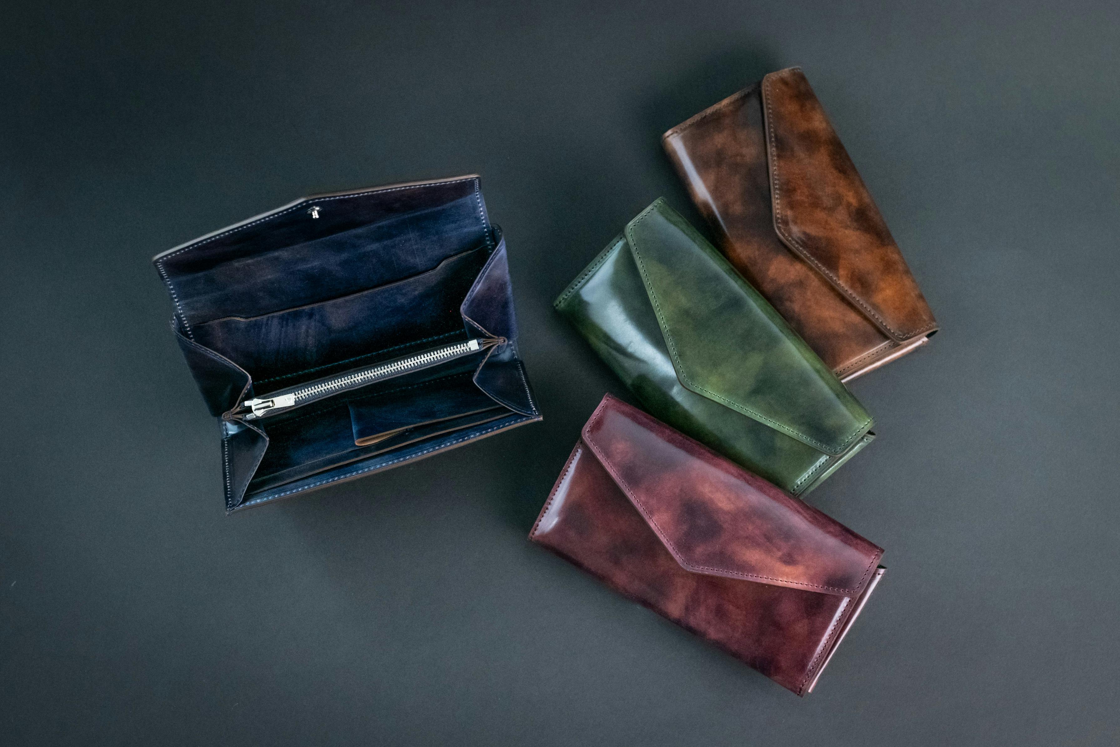 A3: 他社のコードバンレザーは、1色のシンプルなカラーが多いですが、フィセルに使用しているコードバンレザーは、美しいグラデーションが特徴です。同じ革の表情がないため、世界に一つだけのオリジナルな革となります!
