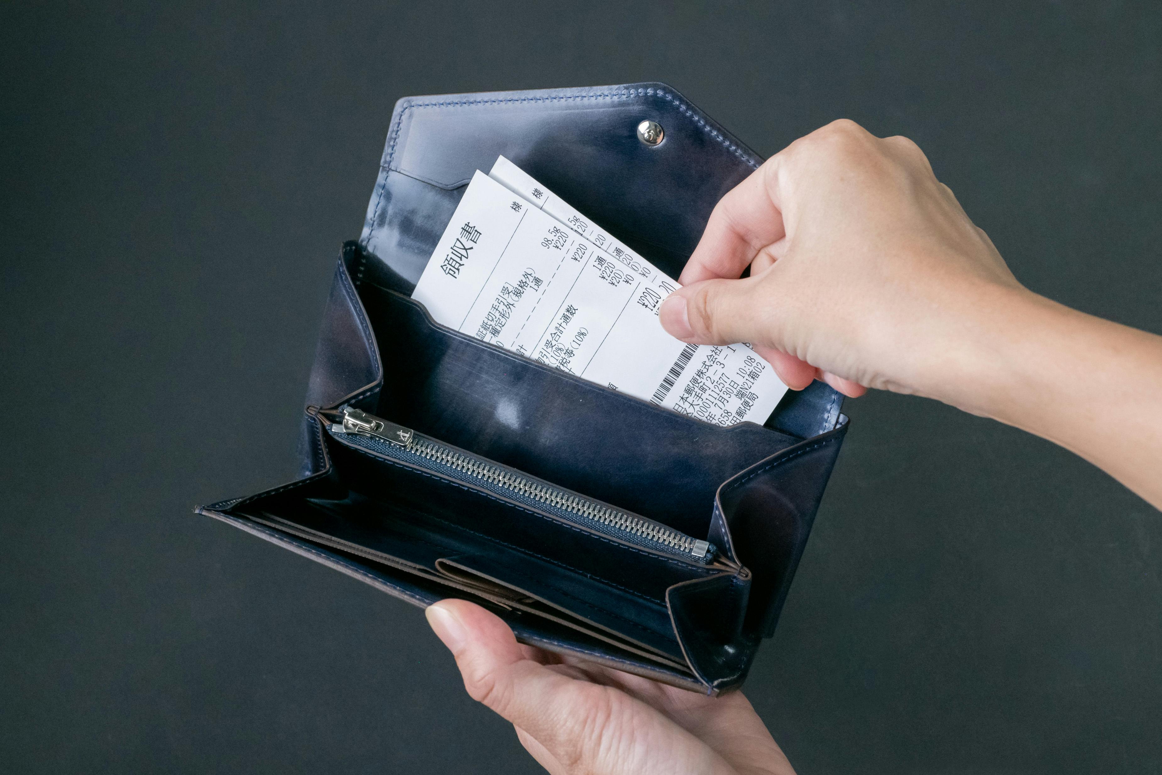 コンパクト財布ではあまり入れることが出来なかったレシートや領収書も「極小長財布Ficelle-フィセル-」なら入れられます!