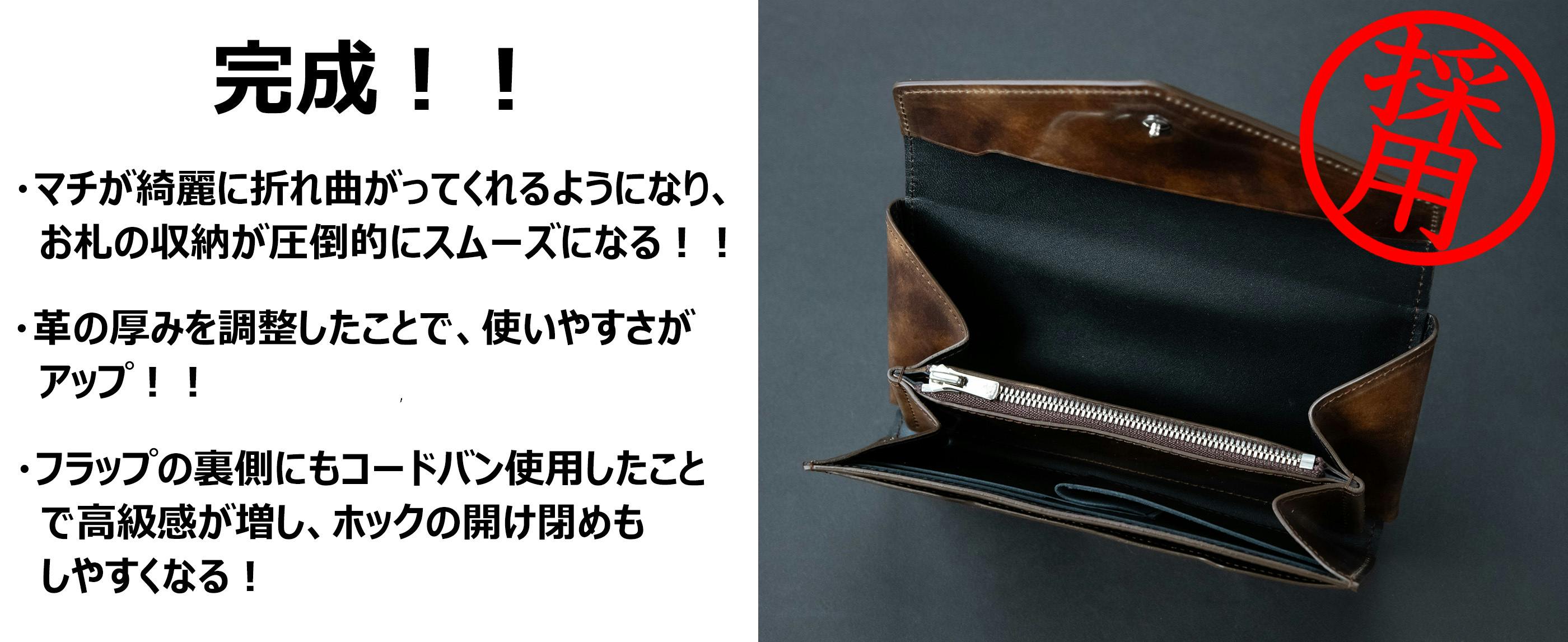 その一心で財布職人集団である新進工房のスタッフが一丸なり、試行錯誤した結果ようやく、、、本当にようやくでキャッスレス時代に使いやすい、極小でスリムなフラップ財布を完成させることが出来ました!!