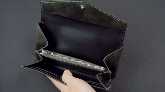従来までのフラップ長財布は小銭入れが深くて見えずらく、取り出しにくいものが多かったです。