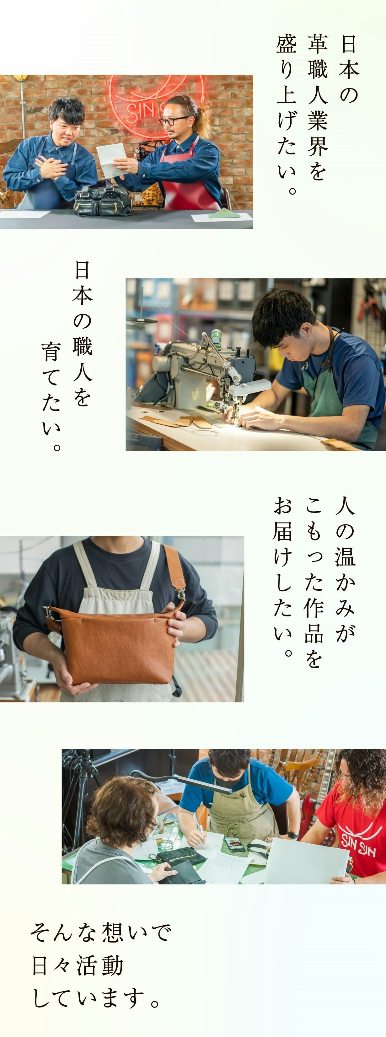 この文言は、シンプルですが僕たち職人にとっては大きな夢です。これを合言葉に、僕たち兄弟だけでなくスタッフ一同、みんな一丸となって、斜陽産業と言われているこの日本の革職人業界を盛り上げていこうと考えています。