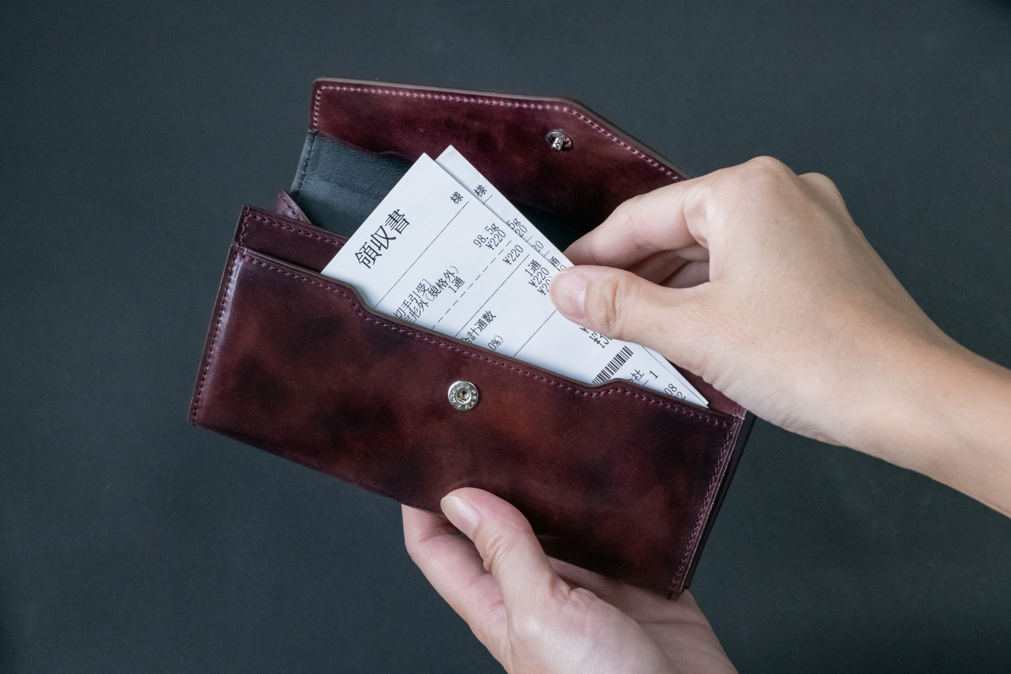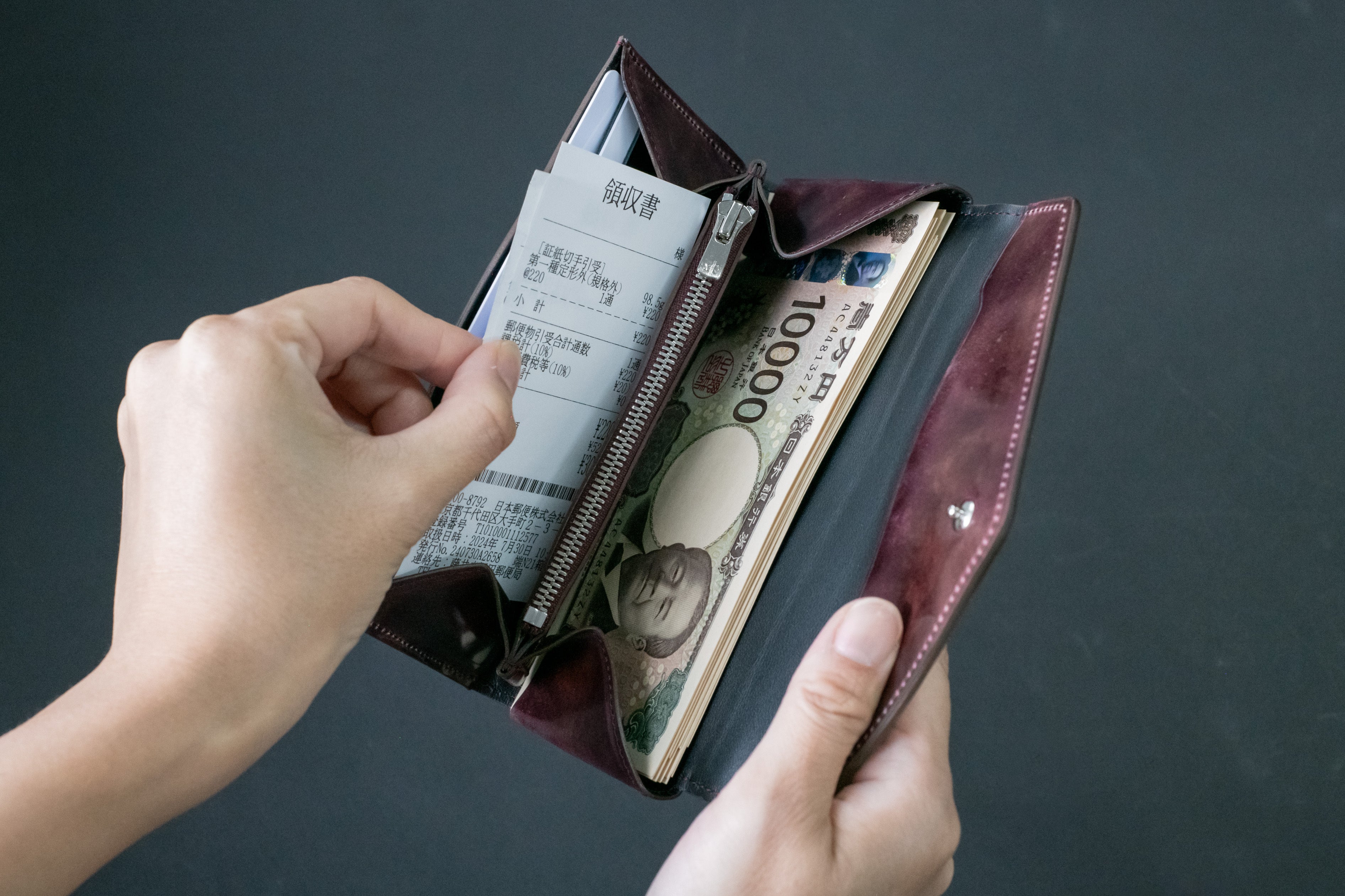 コンパクト財布ではあまり入れることが出来なかったレシートや領収書も「極小長財布Ficelle-フィセル-」なら入れられます!