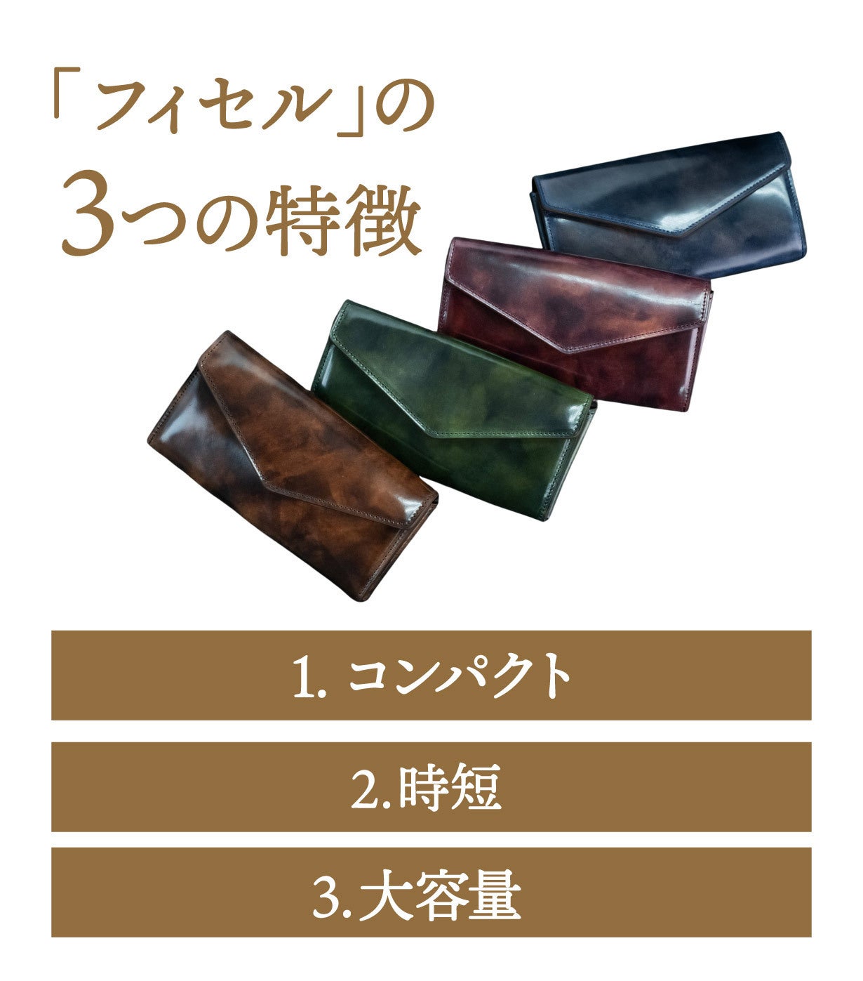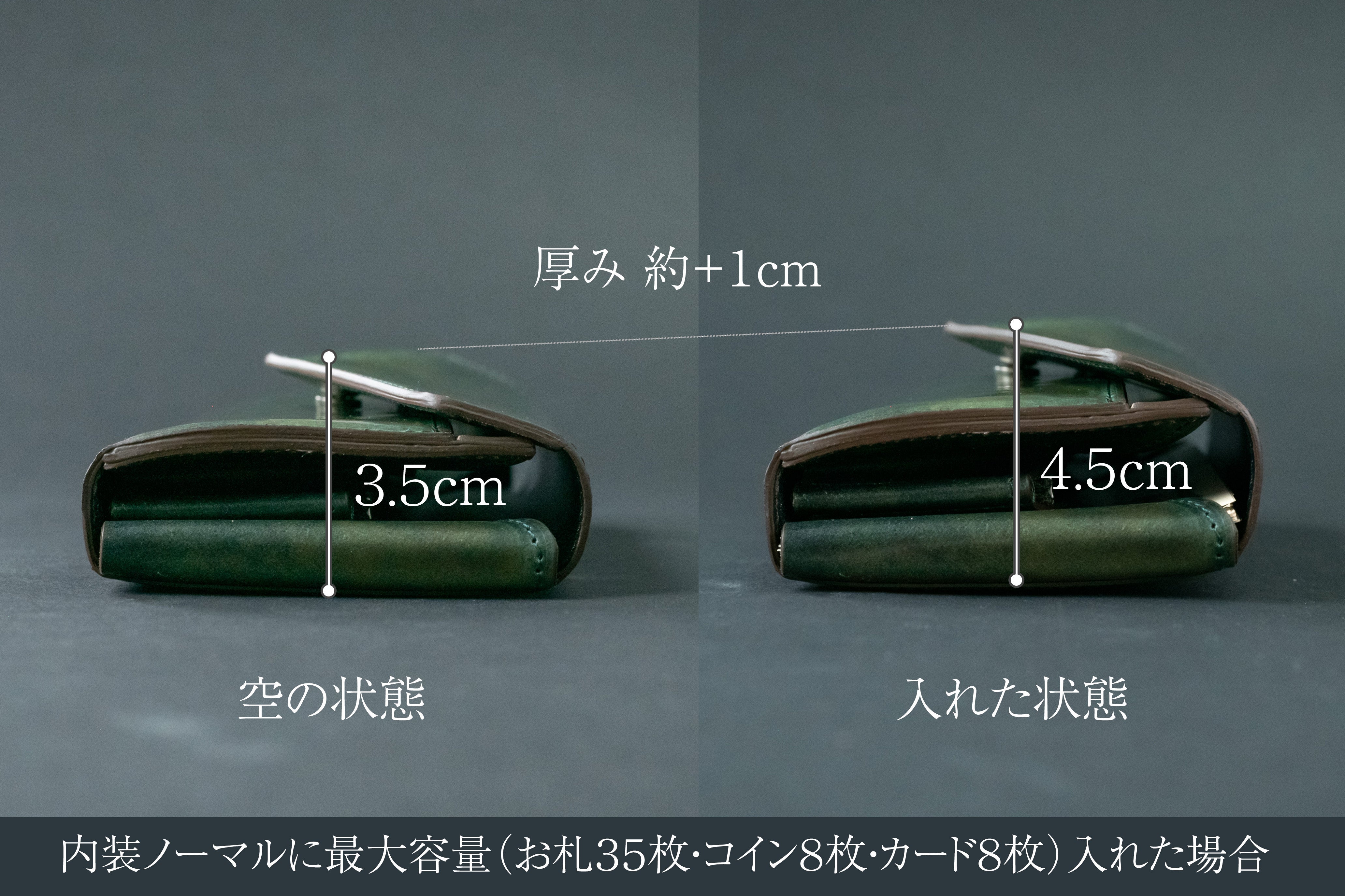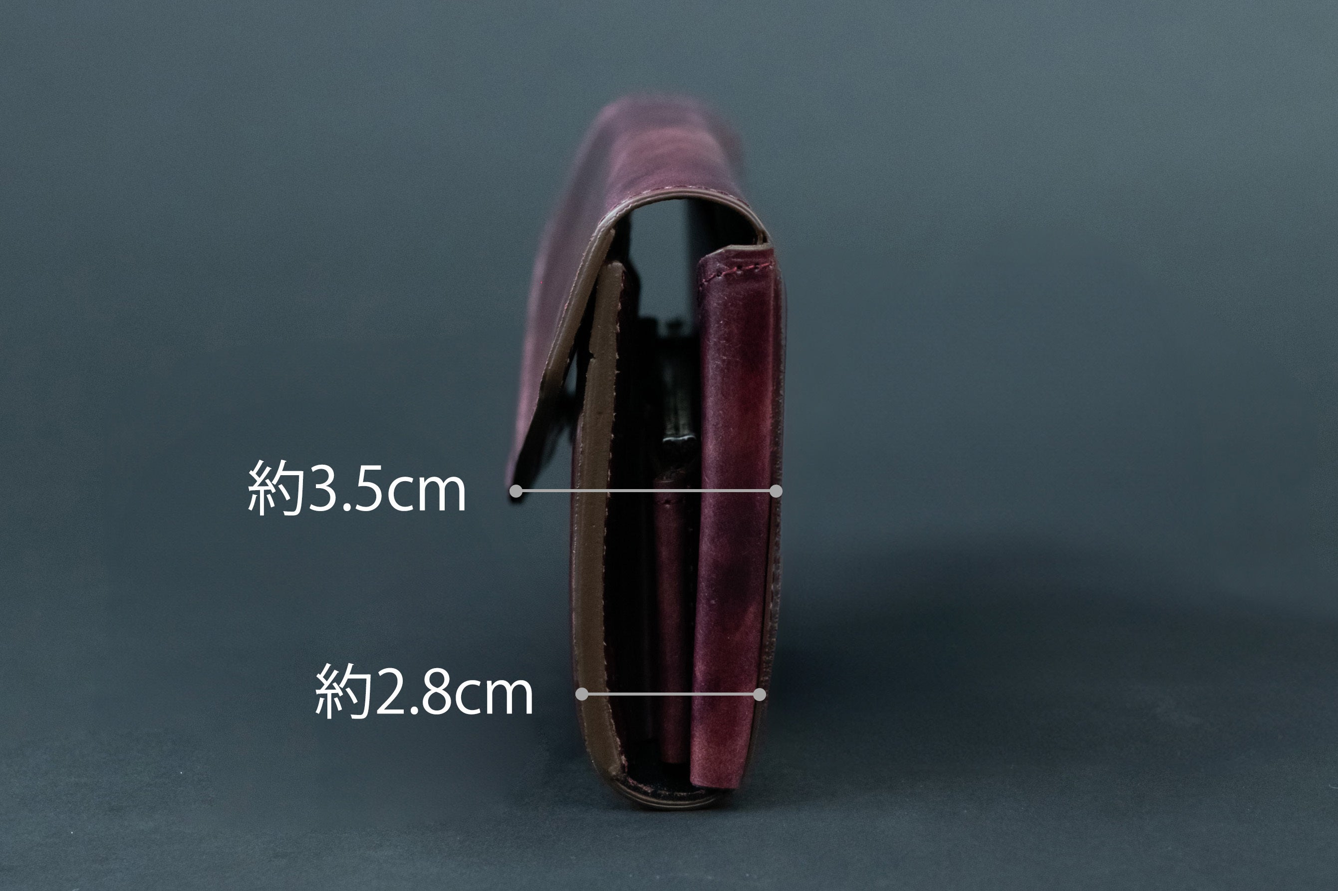 ※今回使用しているコードバン(馬革)は革に張りがあるため、従来のフィセルシリーズ(牛革)と比べると厚みが約8mm増しております。