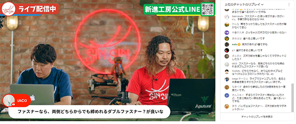 新進工房のYouTubeチャンネルにてライブ配信を行い、チャット欄やアンケート機能を使って4000人以上の方から「極小長財布フィセル」を作るにあたって様々なアイデアをいただきました!