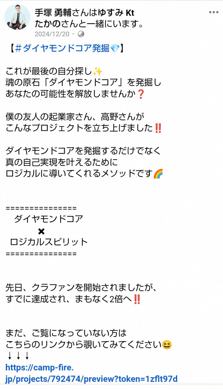 〜手塚勇輔さん⭐︎Facebook 投稿〜