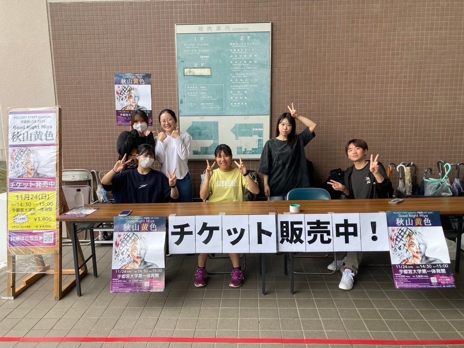 MELODY STAFFが運営するLIVEでは、一般的なプレイガイドでの販売だけでなく、自分たちでオリジナルチケットの販売を行っています。宇都宮大学峰キャンパス生協前にて、平日11時~16時に授業の合間などをつかい、交代交代で販売を行っています。授業も忙しい中、手伝いに来てくれるみんなには本当に感謝しています。
