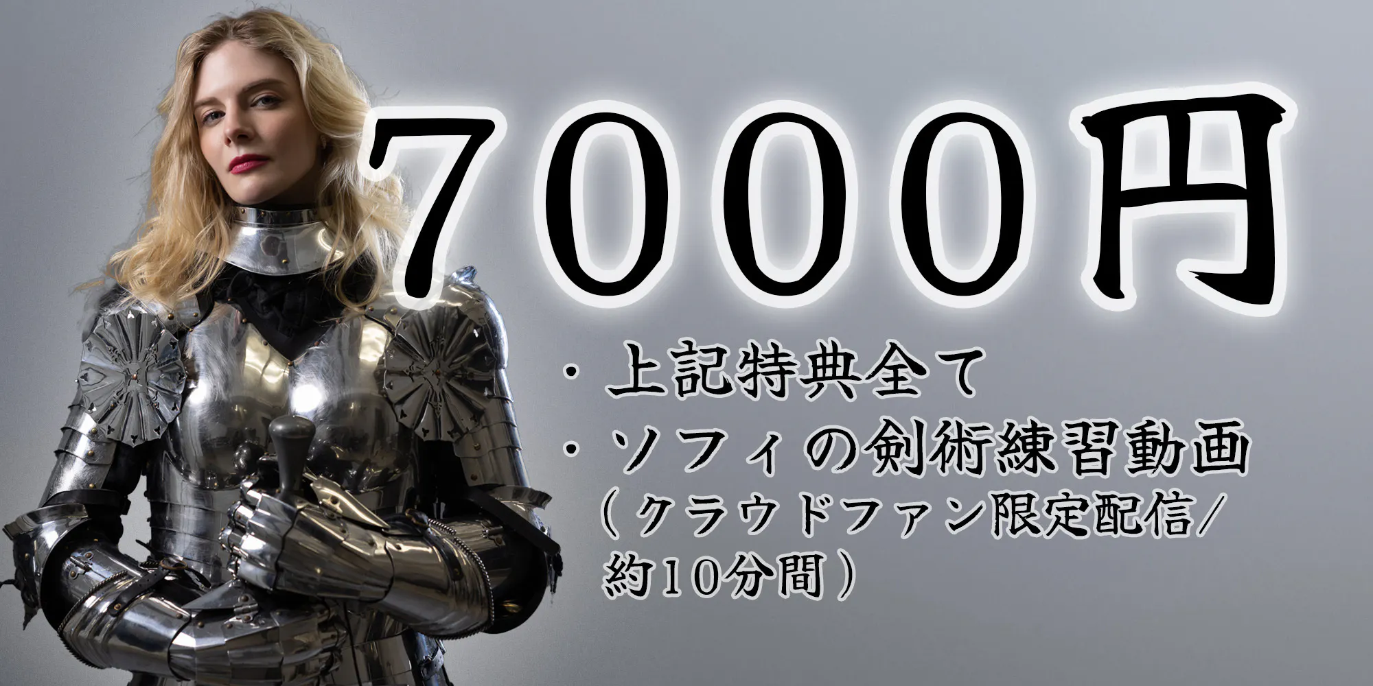 クラウドファンの方限定の、約10分間のアーマードファイト動画!Youtubeチャンネルにも公開されていないファイト動画をお楽しみください!映画制作をサポートしながらソフィの剣術をもっと見たい方にオススメ!