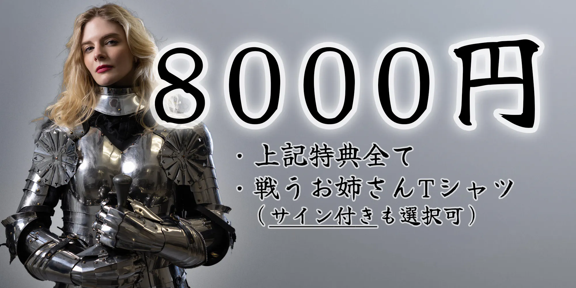 女騎士姿のソフィのかっこいいTシャツ!ご希望の方にはTシャツの前後どちらかにソフィの手書きサインもお付けします!(S,M,Lサイズから選択可能)(サイズ表やデザインが確定次第、11月後半を目安に購入者の方にメールいたします)