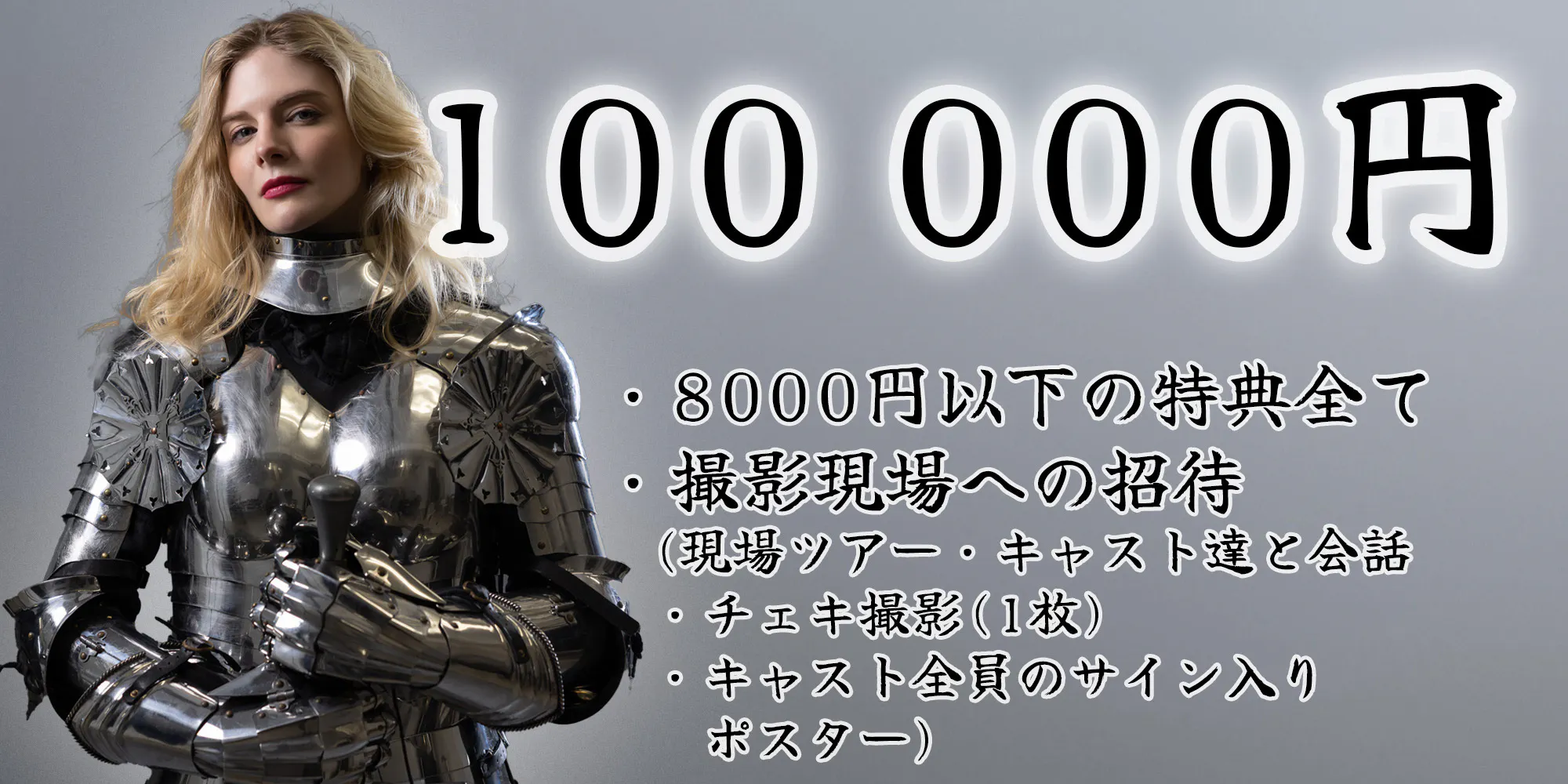 最も特別なオファー!プロデューサーとしてあなたの名前がエンドクレジットやポスターに掲載されます!そして、キャスト全員のサイン入り映画ポスターも1枚もらえます!