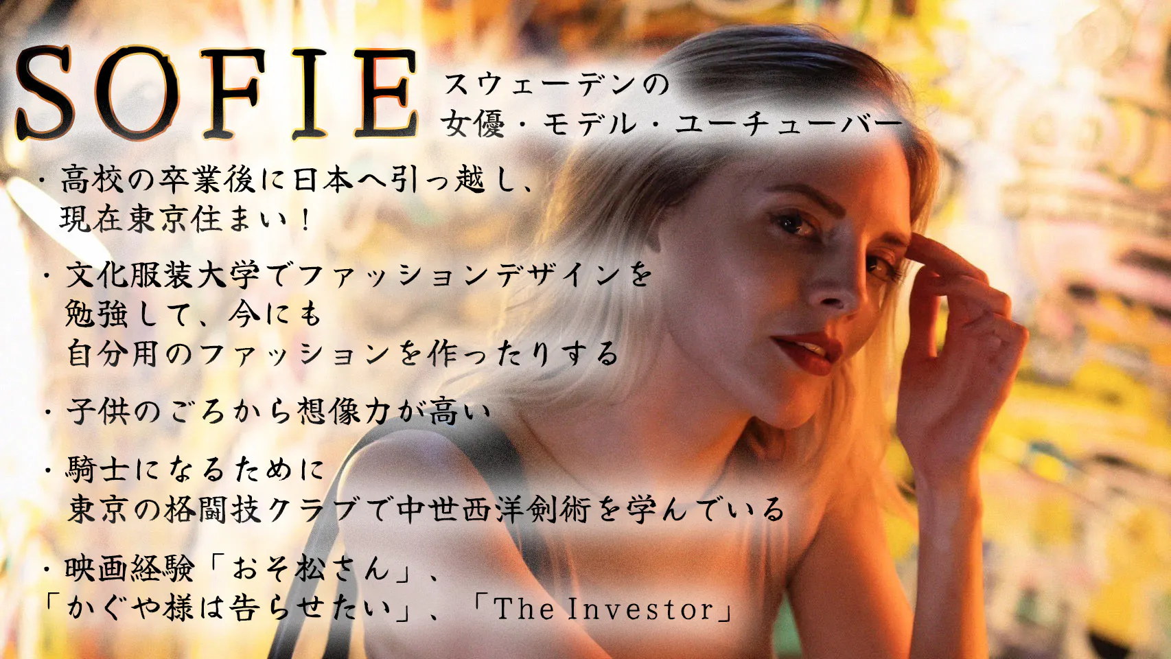 私はスウェーデン人の女優で、登録者数1万人を超える東京在住のyoutuberです!