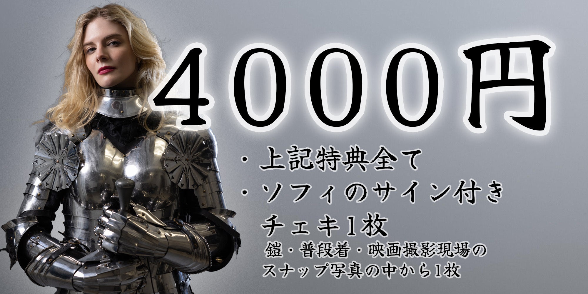 ソフィの手書きサイン付きの特別なチェキ!あなたのためにサインします!写真はご希望に合わせて、女騎士の鎧・普段の洋服・映画撮影用のコスチュームを着ているスナップ、の中から1枚お選びいただけます!