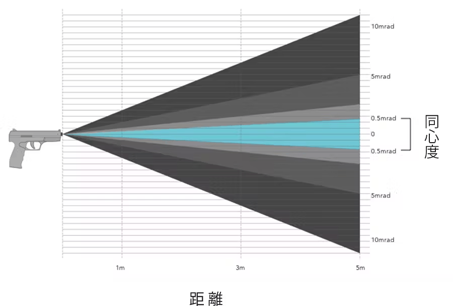 VariShotに採用されたレーザーモジュールは、いかに本物の銃に近づけるかを考え抜き、銃と同レベルの精度を誇る0.5mradに設定しました。