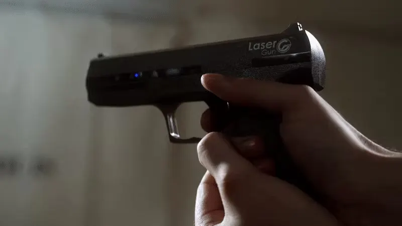本物の銃と違い、レーザービームで狙撃するため、壁に穴が空いたり、物や人に危害を及ぼす心配もありません。