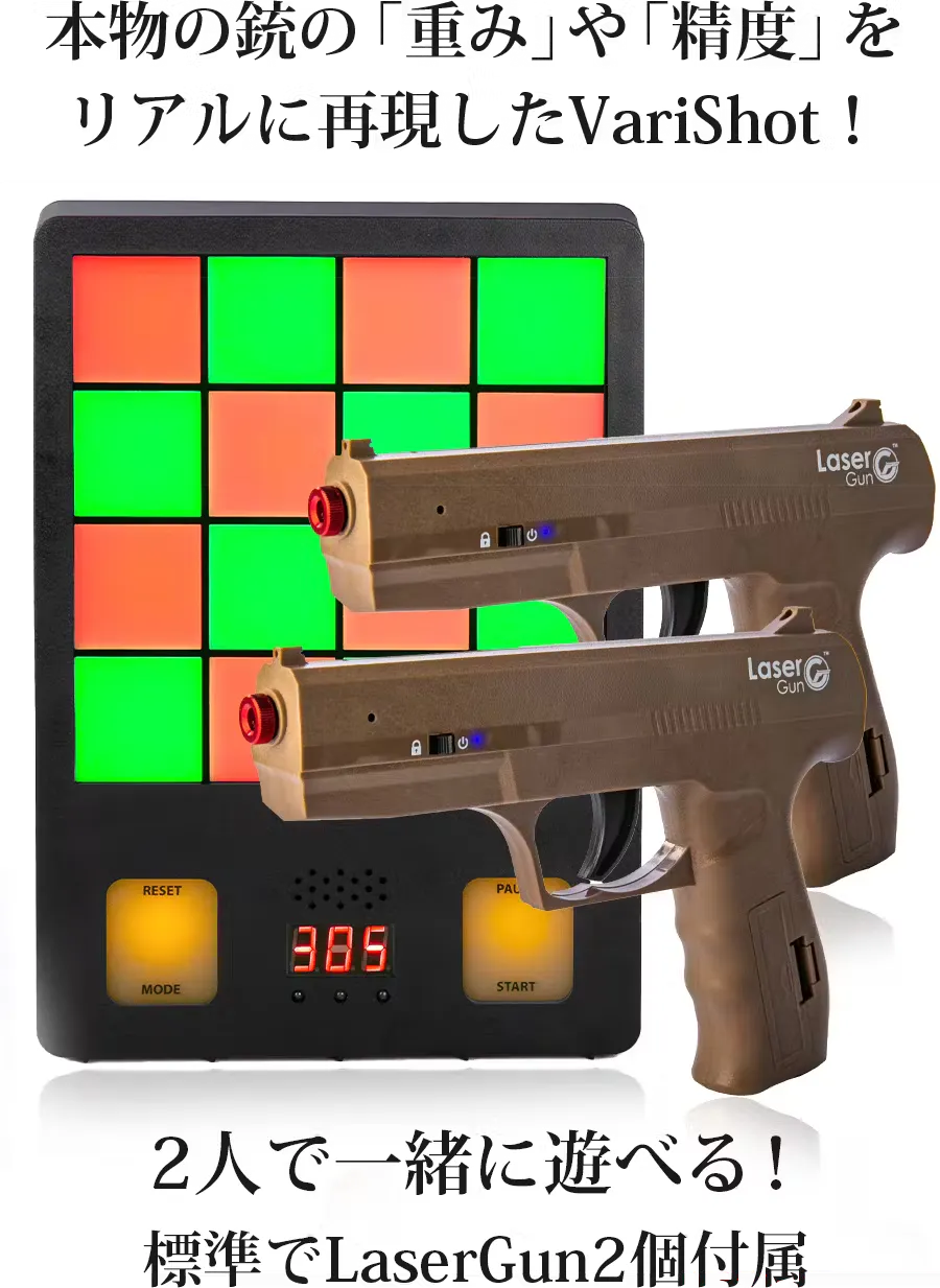 本物の銃に近づけることにこだわったVariShotで、臨場感溢れるレーザーシューティングを楽しめます。