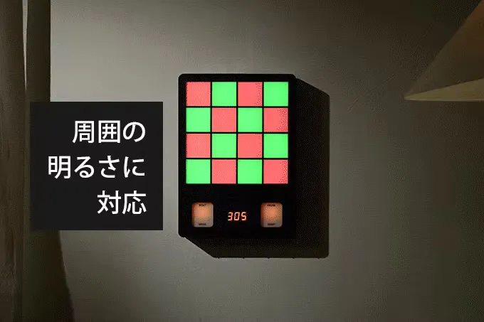 距離が離れるほど周りの環境が影響し、パネルセンサーの感度は低下します。それを防ぐため自動調光機能を設置!周囲の様々な明るさに対応します。