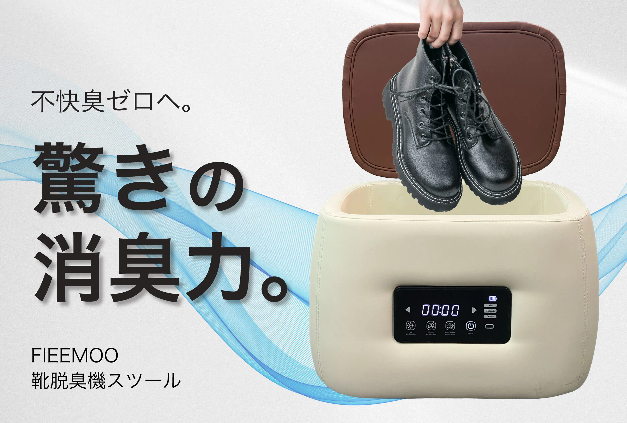 除菌率99%以上のFIEEMOO靴脱臭機スツールなら、匂いの原因をもとから分解・消臭!