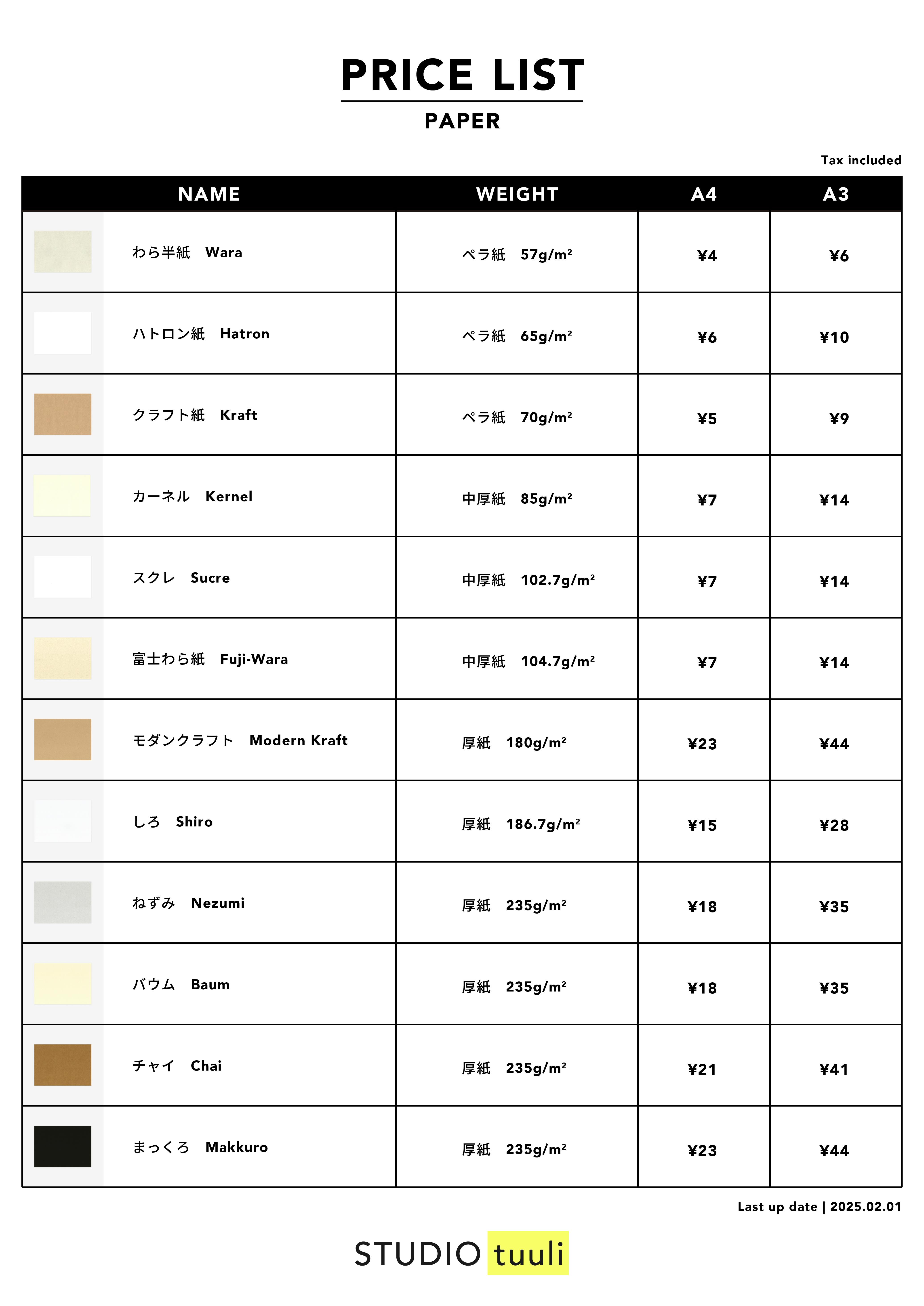 当スタジオでは13色のインク、12種類の用紙がご利用いただけます。