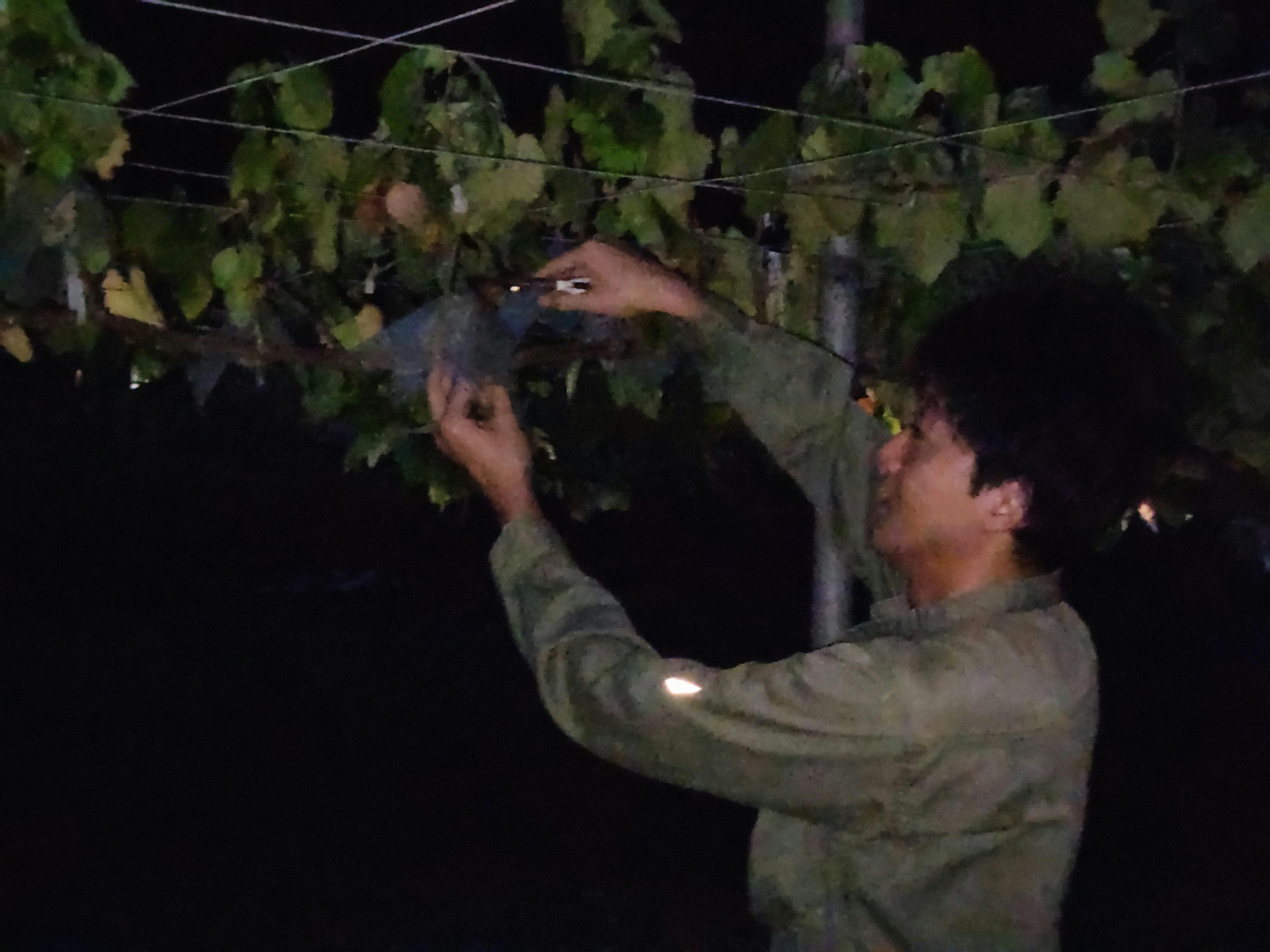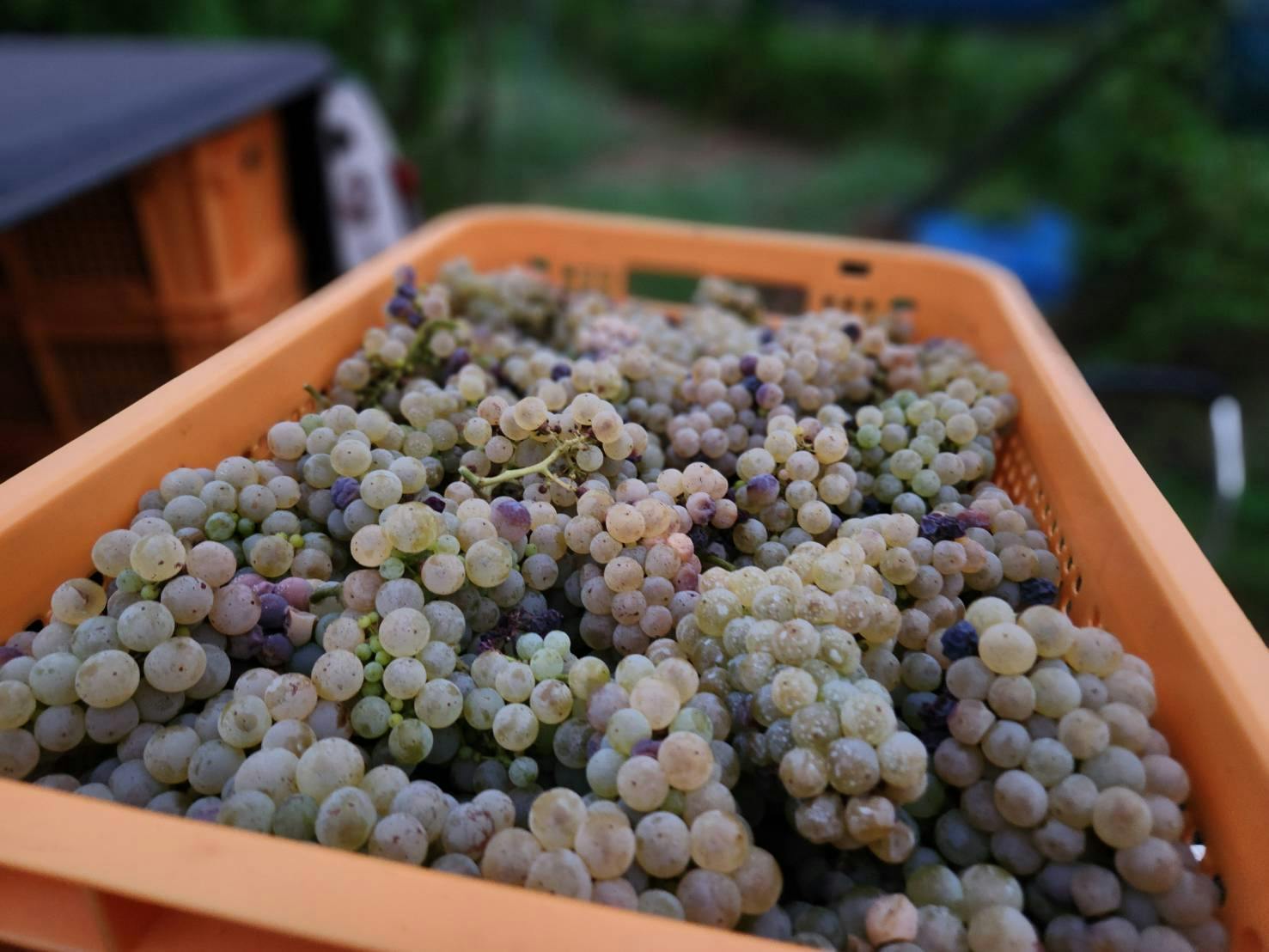※醸造のタイミングと収穫のタイミングがほぼ同時で時間に追われてしまったので、完璧とまではいかなかったですが、選果しながら収穫しました。