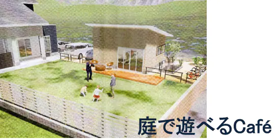 店舗裏には、開放的な広い庭があります。電車もすぐ横を走り子供にも楽しい立地となります。広い庭を開放することで、お子様ずれの家族でも、入りやすい間口となります。庭では、ランチはもちろん、持ち帰り商品も食べていただけるため、多くの方にリラックスした雰囲気で楽しんでいただけます。また、朝食を提供したり庭の一角に、パターの練習場を設けることで、仕事をリタイヤされた方々にも朝から楽しんでいただける場となり、年代も幅広く、開放的な場で 話もはずみ会話も盛り上がることでしょう。