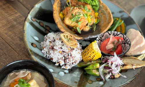 化学調味料が溢れている現代では、昔の日本とは異なった食生活です。しかし、日本の風土は発酵に向いていて味噌や、醤油、日本酒など発酵大国でもあります。発酵食品は腸内環境を整え、消化のお手伝いもします。腸が正常に働いていれば身体に不必要なものも排除してくれます。 無添加にこだわるのはもちろんですが、100%排除はとても無理な現代です。ならば、せめて正常な腸へとのお手伝いが、食を通して出来るのではないかと考えました。健康寿命世界1位の日本では、健康志向も腸活も高まっています。栄養バランスの整った『まごわやさしい』+『発酵食品』を心掛け、多品目を使い、色鮮やかなバランスプレートを提供します。 また、叔母「やーや」の”生イーストのパン”は絶品で子供たちも大好きです!