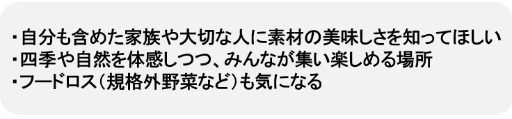 「人間の体と人間の暮らす土地は一体で、切っても切れない関係がある」と言われています。その土地のもの、季節のものを食べ生活するのが身体に良く、『地元野菜』を使うことで知らない間に体に合った食事をしていることになります。また、地元野菜となれば馴染みやすく、生産者の表記もあれば 食事中の会話のネタにもなるでしょう。