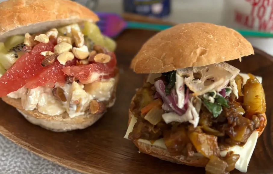 (カレーサンド、クリームチーズとフルーツサンド)