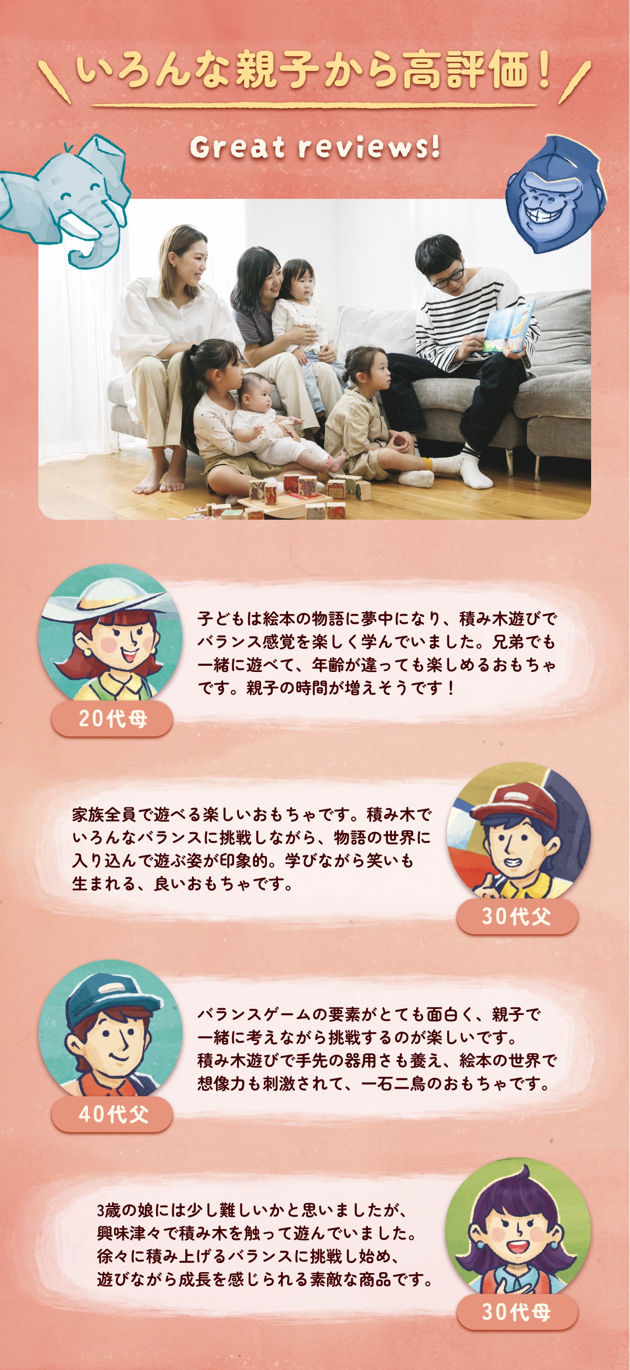 【欲張りセット】キャプテン・ビリーのバランスだいぼうけん 以下のセットをお送りさせていただきます。 ・キャプテン・ビリーのバランスだいぼうけん積み木1セット ・絵本「キャプテン・ビリーのバランスだいぼうけん」1冊 ・キャプテン・ビリーのバランスだいぼうけんロングTシャツ(130サイズ、110サイズより選択できます) ・キャプテン・ビリーのバランスだいぼうけんハンカチ(サイズ20cm×20cm) Tシャツとハンカチのデザインを以下の4つから選択できます。 (キャプテンビリーセット・ともだちセット・ハートセット・かぞくセット) 先着100名様限定で販売予定価格33,000円の30%OFFの23,100円でご提供させていただきます。 ※送料込みのお値段です。 お申し込み順に発送いたします。 ※皆様のご支援により量産効率が向上した場合、正規販売価格が販売予定価格より下がる可能性もございます。 ※デザイン・仕様・内容品は変更になる可能性もございます。ご了承ください。 ※ご注文状況、使用部材の供給状況、製造工程上の都合等により出荷時期が遅れる場合があります。 ※適格請求書発行事業者登録番号:あり(番号が必要な方はメッセージで問い合わせください)