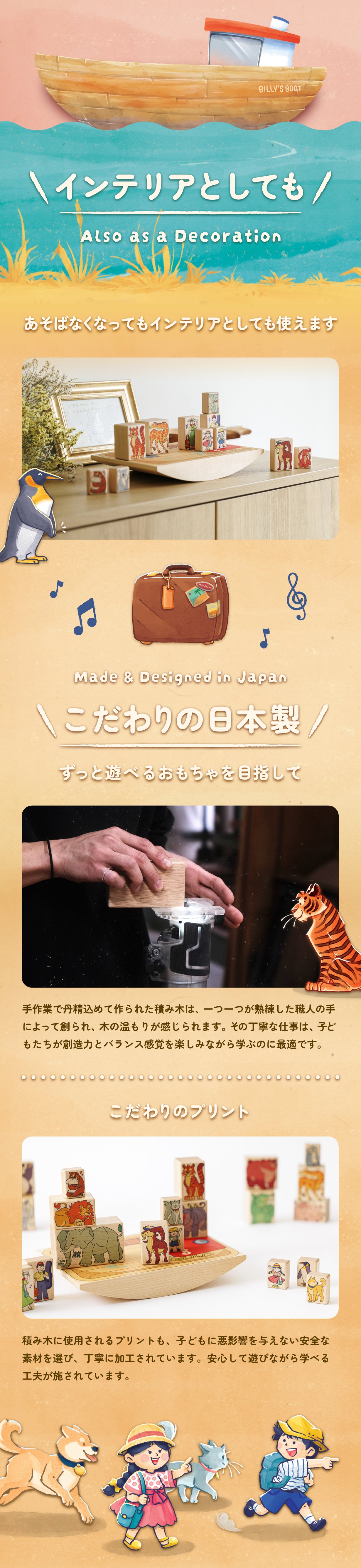 【超超早割】キャプテン・ビリーのバランスだいぼうけん 以下のセットをお送りさせていただきます。 ・キャプテン・ビリーのバランスだいぼうけん積み木1セット ・絵本「キャプテン・ビリーのバランスだいぼうけん」1冊 先着200名様限定で販売予定価格28,300円の30%OFFの19,800円でご提供させていただきます。 ※送料込みのお値段です。 お申し込み順に発送いたします。 ※皆様のご支援により量産効率が向上した場合、正規販売価格が販売予定価格より下がる可能性もございます。 ※デザイン・仕様・内容品は変更になる可能性もございます。ご了承ください。 ※ご注文状況、使用部材の供給状況、製造工程上の都合等により出荷時期が遅れる場合があります。 ※適格請求書発行事業者登録番号:あり(番号が必要な方はメッセージで問い合わせください)