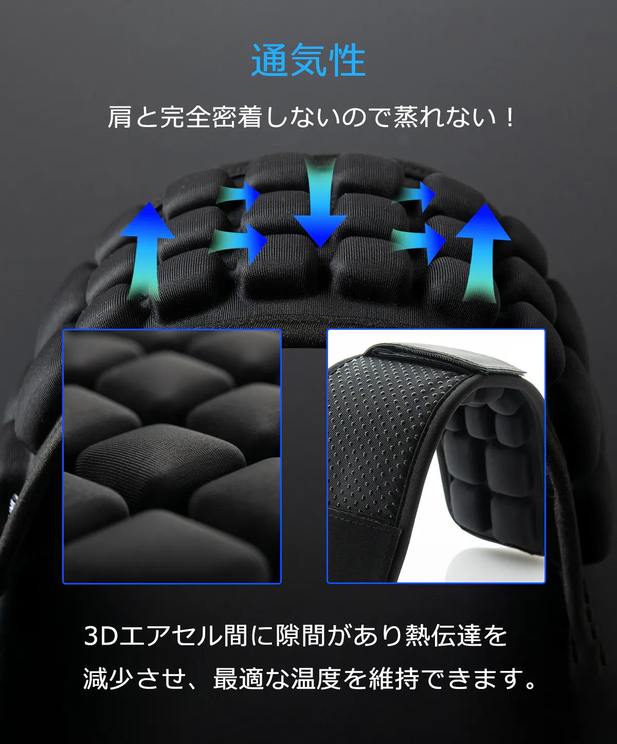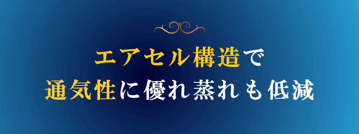 独自のエアセル構造で通気性に優れ蒸れも低減。夏場でも快適に使えます。