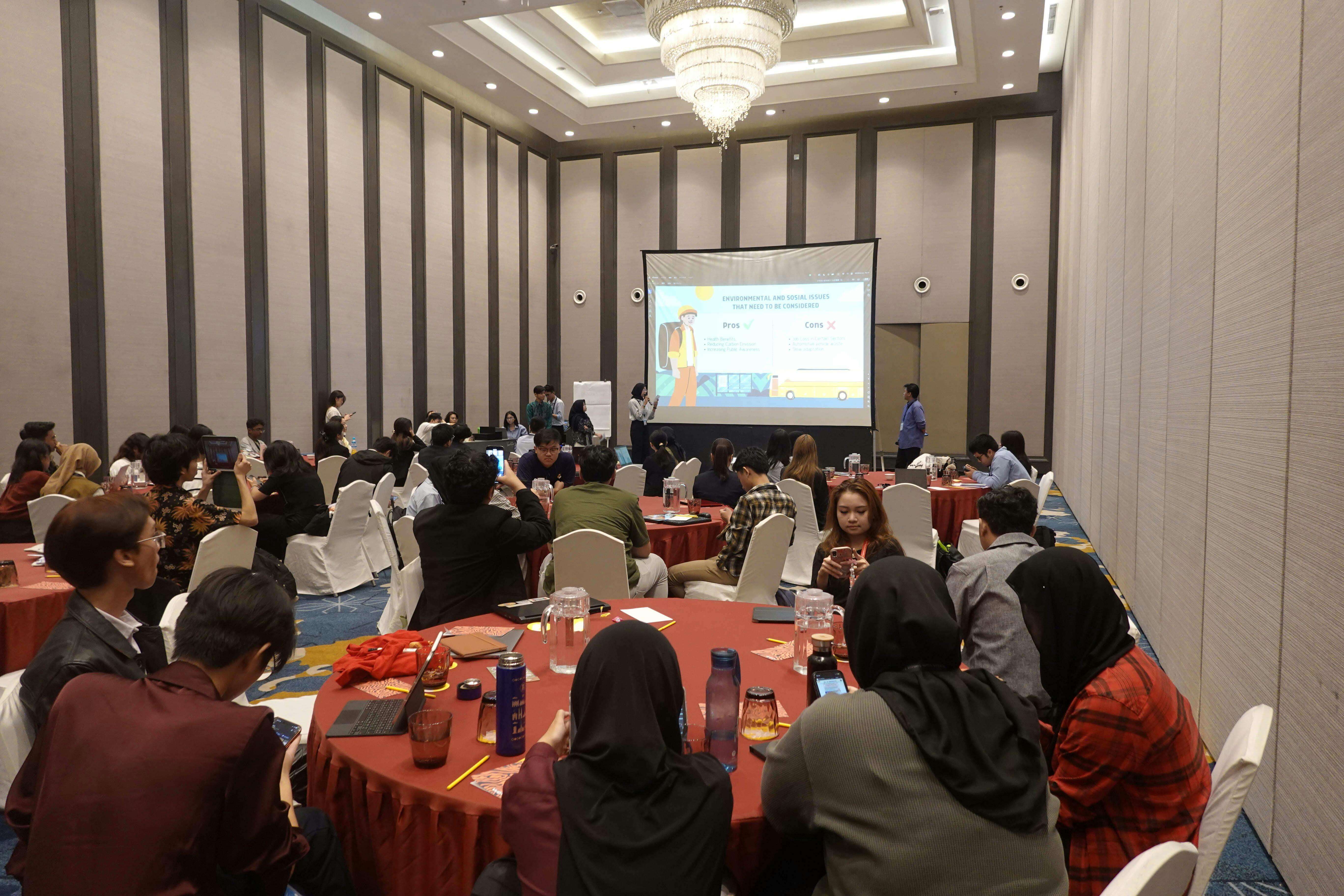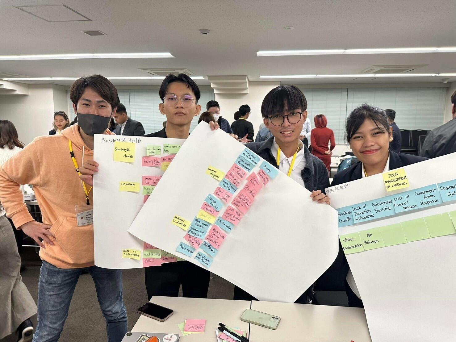 2025/05/14 19:51電波環境により更新がされておりませんでした。申し訳ありません。今更ではございますが、更新いたします。2/22(土)の午前中に参加者による最終発表プレゼンを行いました。それぞれの分科会から5チームずつが講義や視察を経て得た知見をもとにスライドを作成して、審査員の前で会議の成果を発表しました。環境開発分科会環境開発分科会では、「住みやすいまちを作り出すにはどうすればいいだろうか」というテーマに基づき、各班が発表しました。優秀賞を受賞した班は、若年層がより都市交通にアクセスしやすいように、価格設定や、学校や病院などの公共機関と都市交通を自然につなげるような都市計画を提案しました。単に解決策を提示するだけでなく、それが引き起こす環境面や経済面の課題にも触れており、参加者の未来につながるような発表となりました。医療分科会医療分科会では、「すべての人に医療を届けるにはどうすればいいのか」というテーマに基づき、各班が発表しました。こちらで優秀賞を受賞した班は、健康データを中心化することと脱中心化することのメリットとデメリットをまとめた結果から、すべての人の医療へのアクセスが良くなるという結論を導き出し、中心化を実現するために、政府や病院、NGOが主体となって、デジタル化を進めていくべきだという発表を行いました。主張だけでなく、デジタル化を一か月単位で進めていく計画を提案しました。その他の班でも、大変興味深い発表が多くありました。 もっと見る最終発表に向けてワークショップを行いました!
