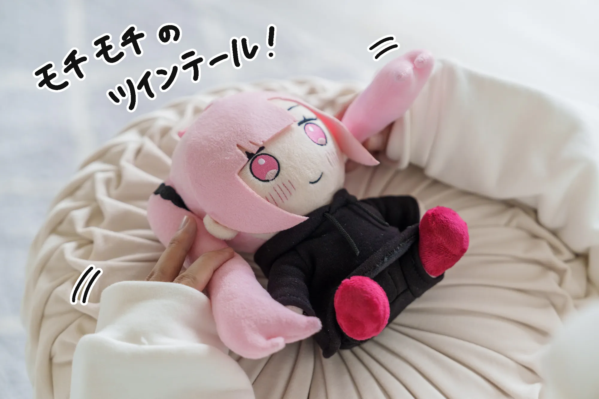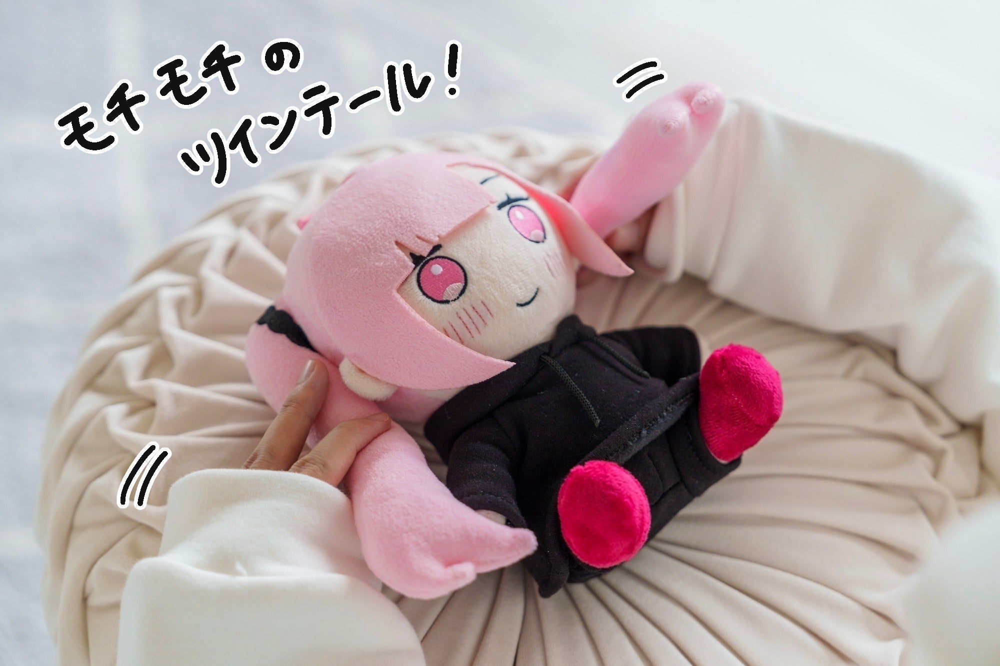 チャームポイントのピンクツインテールはもちもち素材で再現!