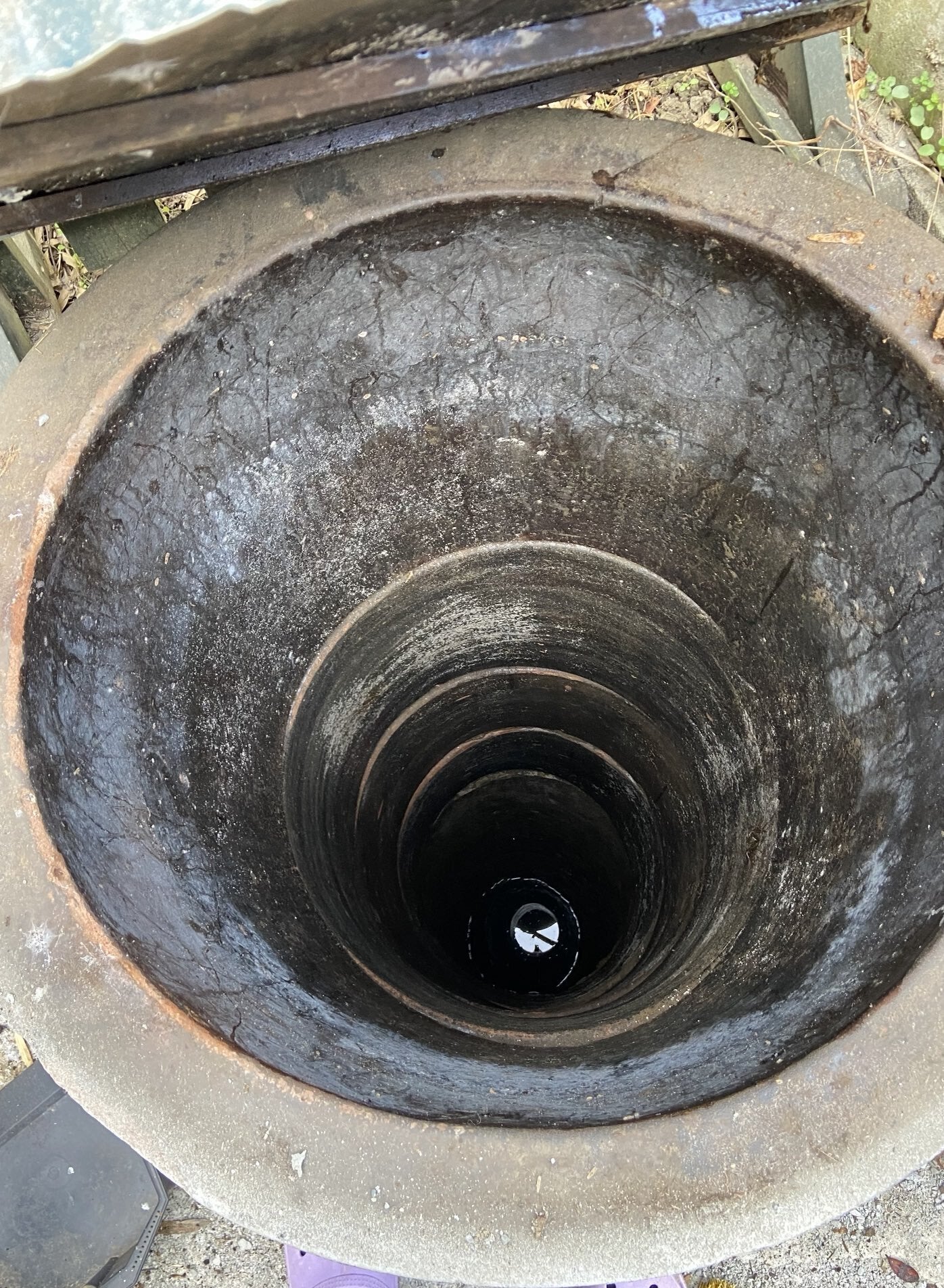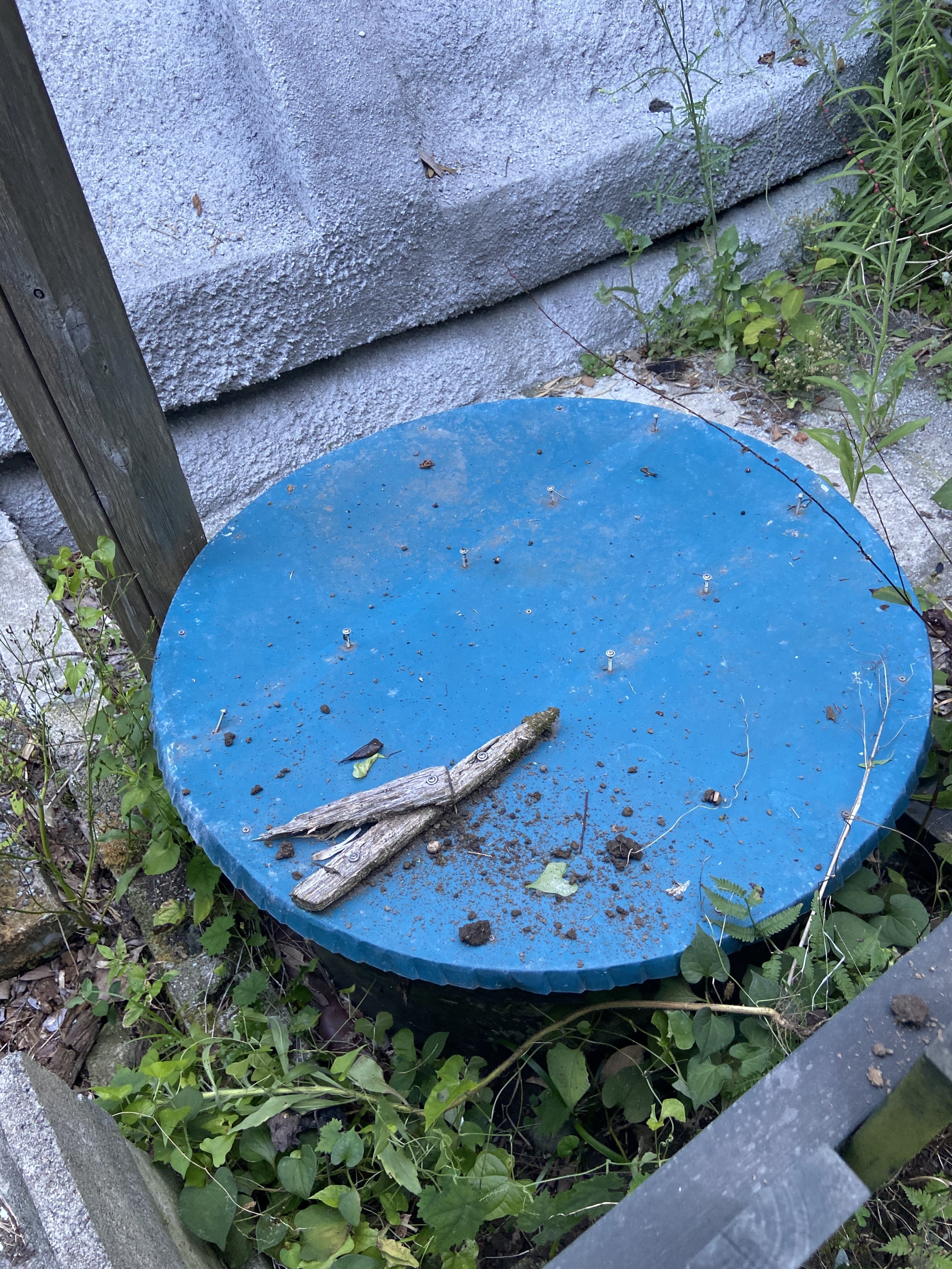 蓋はこのように乗せるだけのものです!しかも木製の部分は腐っています。この上にブルーシートを被せてはいますが・・・危険です!自殺の名所になるのは避けたいです。