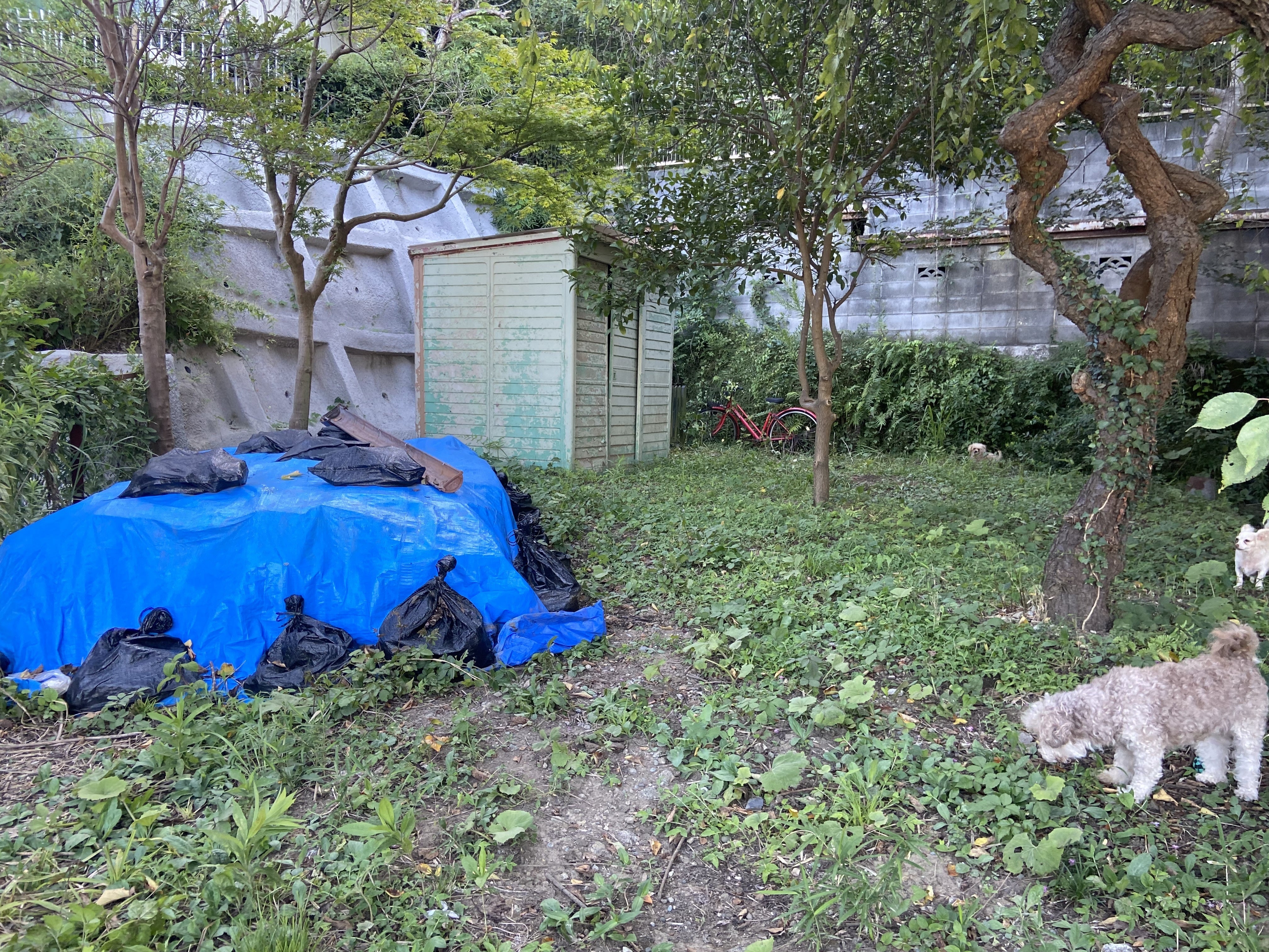 奥に写っているのは物置です。元々この土地にあったものです。