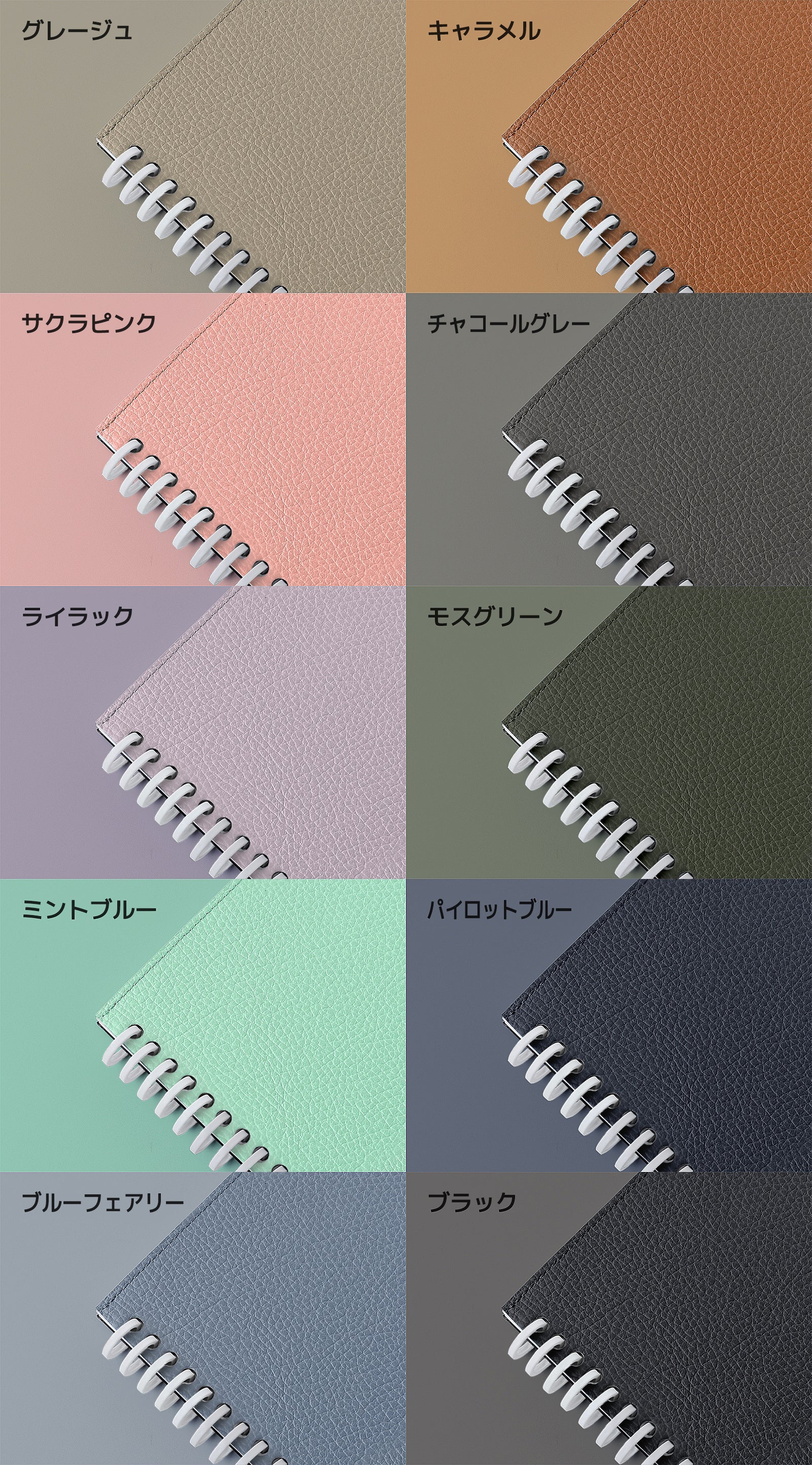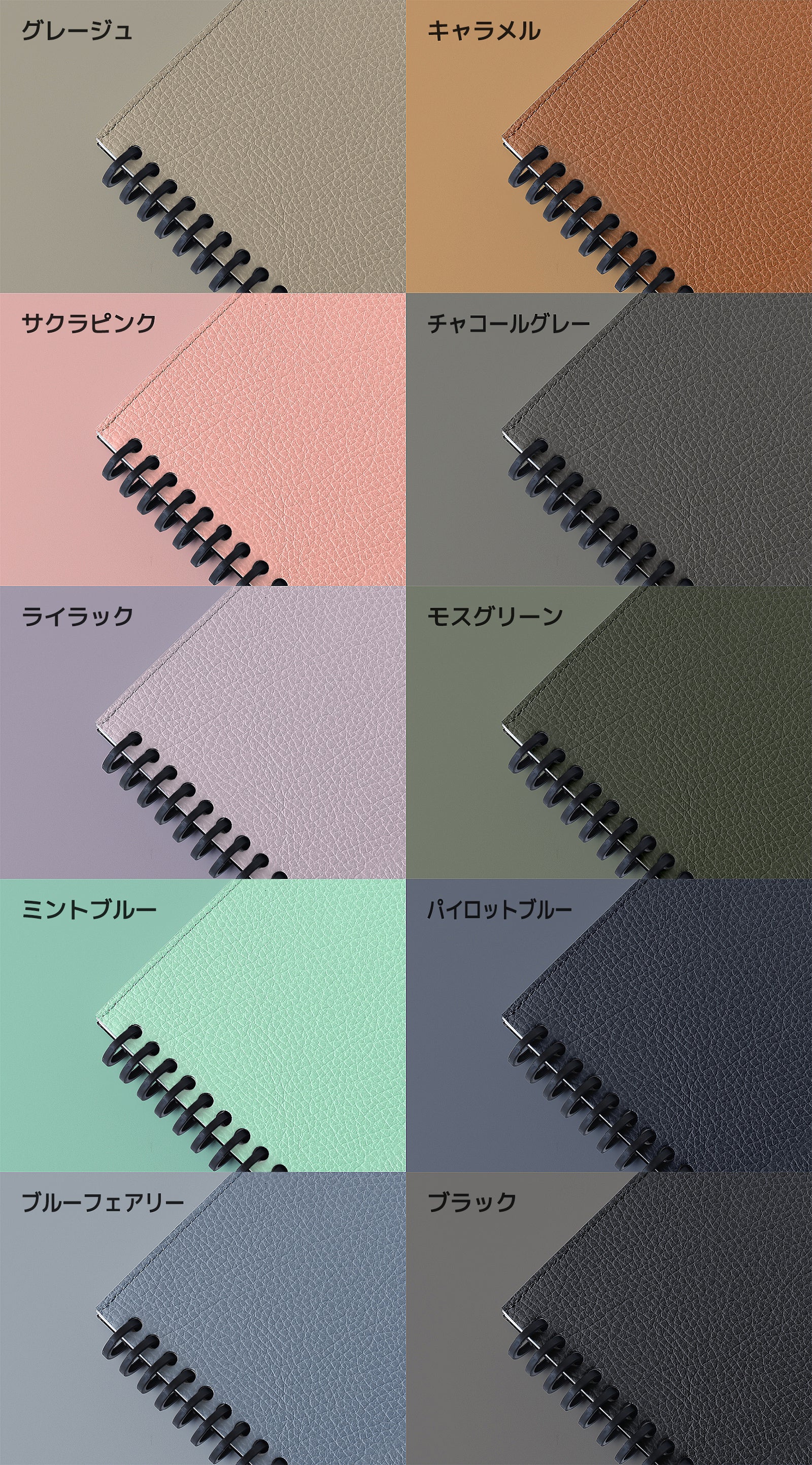 【色展開】ブラック、モスグリーン、パイロットブルー、チャコールグレー、グレージュ、キャラメル、ライラック、ミントブルー、ブルーフェアリー、サクラピンク 計10色