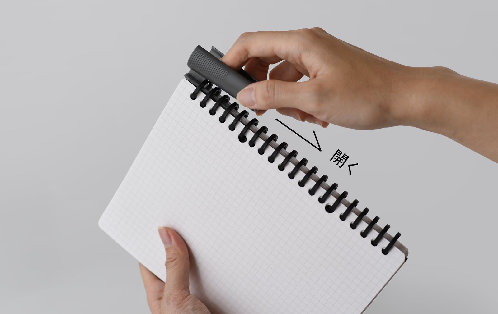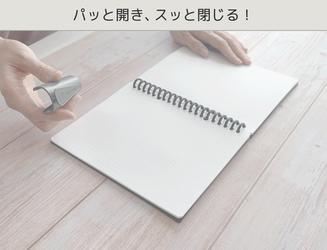 手またはボールペンのペン先でリングは開けますが、同封したリングジッパーを使うと、ファスナーのように素早く開閉することができます。