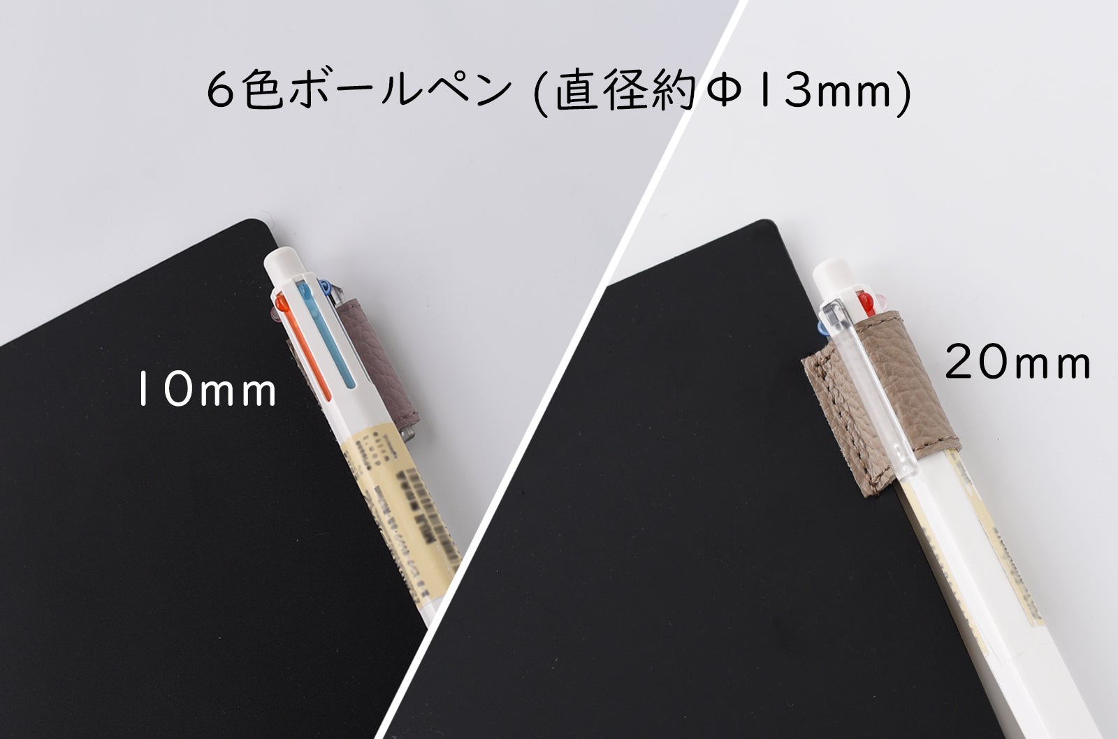 前回プロジェクトの支援者様から頂いたフィードバックに基づき、ペン差し幅20mmもご用意しました。この場合、ペンを丸ごとペン差しに差し込むことができ、より安定的にペンを持ち歩くことができます。